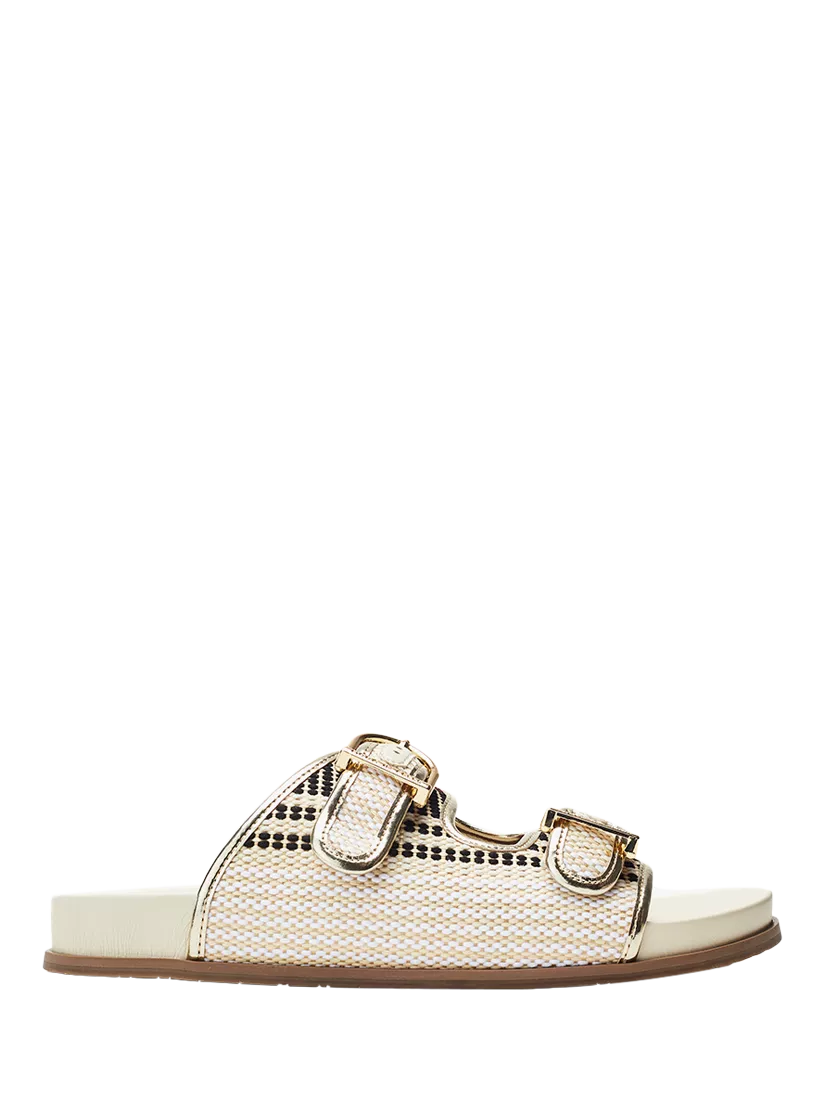 Introducing Janettie, the slip-on sandal with buckle details. Offering an adjustable and secure fit, this style is ideal for casual and dressy occasions. Pair with anything from shorts to summer dresses.