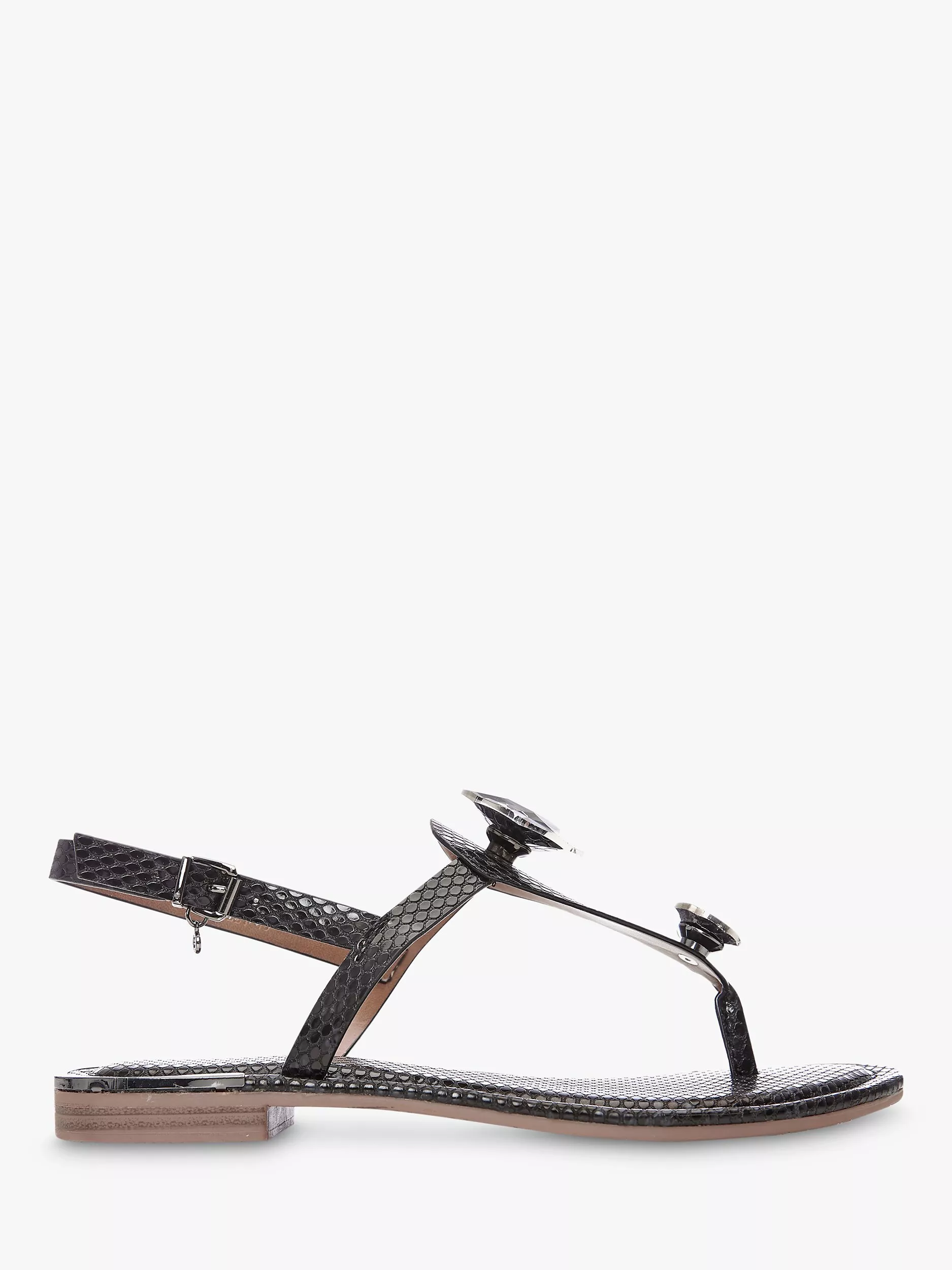 Set on a flat heel and decorated with jewel embellishment, they are structured with a toe post making them easy to slip on and off.
