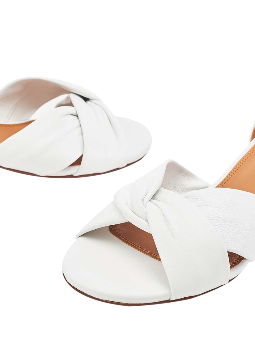 Macadamia is an open-toe, twist-front sandal with a block heel from leather footwear specialist Moda in Pelle.