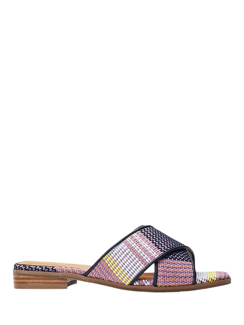 Get to know Naela, the textile-printed slip-on sandal. This style features an open-toe design with crisscross straps, providing a secure fit whilst maintaining a relaxed silhouette. The padded sock ensures comfort for all-day wear.