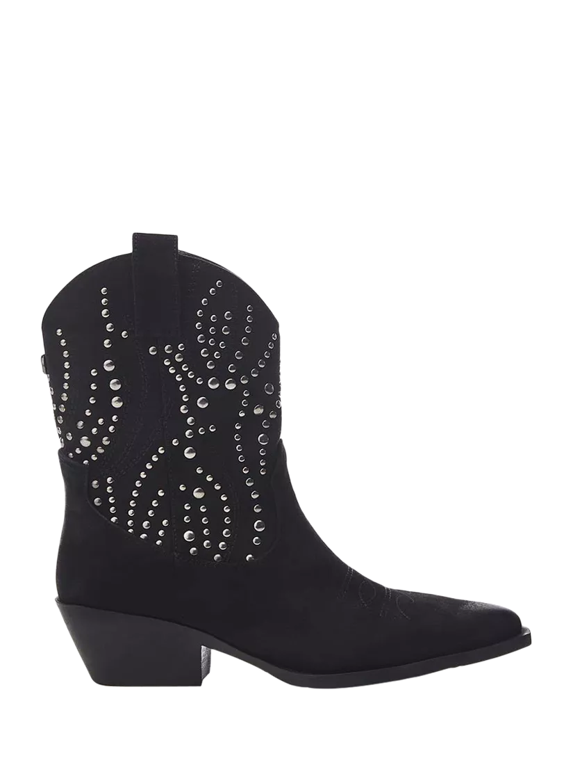 Own the seasons in Okes, the studded Western boot with soft burnished detailing from Moda in Pelle. Featuring a classic pointed toe and Cuban heel, this style boasts an inside zip fastening for an easy fit, complete with a leather sock for comfortable wear. Okes can be dressed up or down, making it a versatile addition to your boot collection.