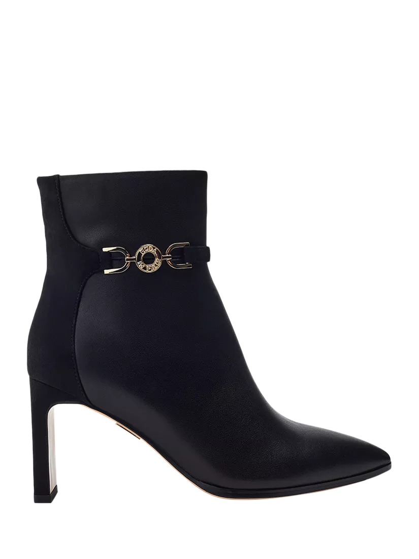 A true chameleon in styling that'll give edge to dresses and denim alike, this pair of ankle boots from Moda in Pelle is cut from quality leather. Elevated on a stiletto heel, they are finished with a near pointed toe.