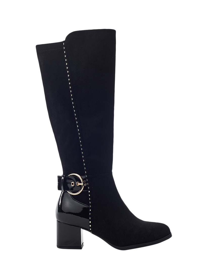 Set your sights on Sameena. Designed with a sleek, elongated silhouette and finished with eye-catching buckle accents, this style features stretch material on the calf, adding to the ease of wear.
