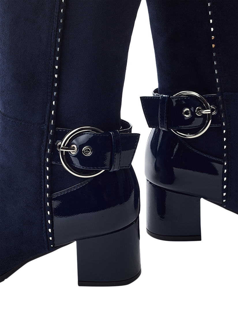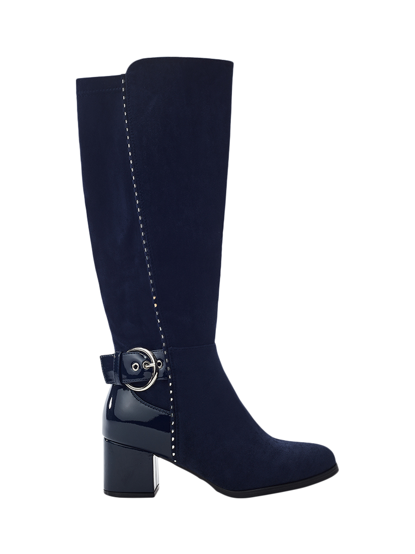 Set your sights on Sameena. Designed with a sleek, elongated silhouette and finished with eye-catching buckle accents, this style features stretch material on the calf, adding to the ease of wear.