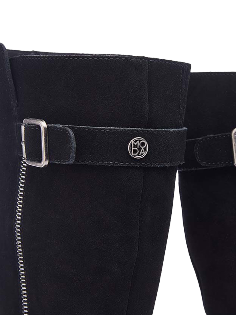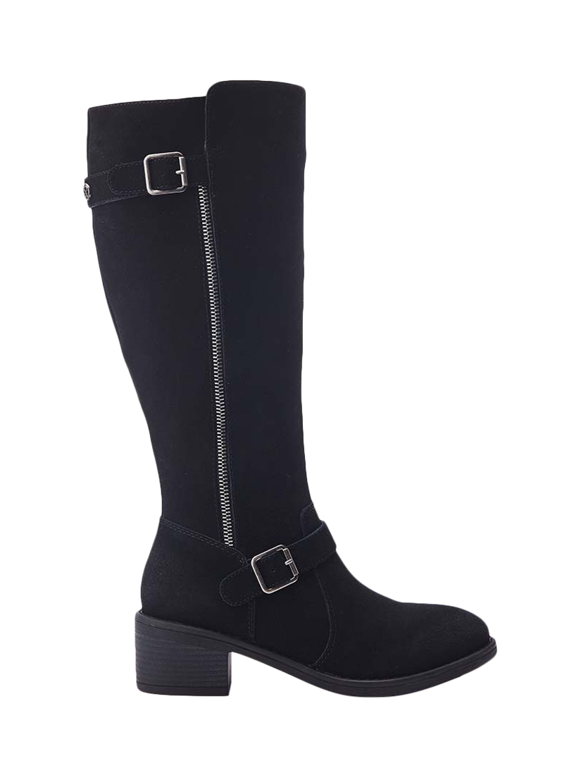 Set your sights on Senlis, the long-heeled boot with buckle embellishments from Moda in Pelle. This soft leather suede style features an elastic panel, zip fastening and leather socks for comfortable and fitted wear. The faux fur lining makes this style perfect for the cooler months. Dress up or down.