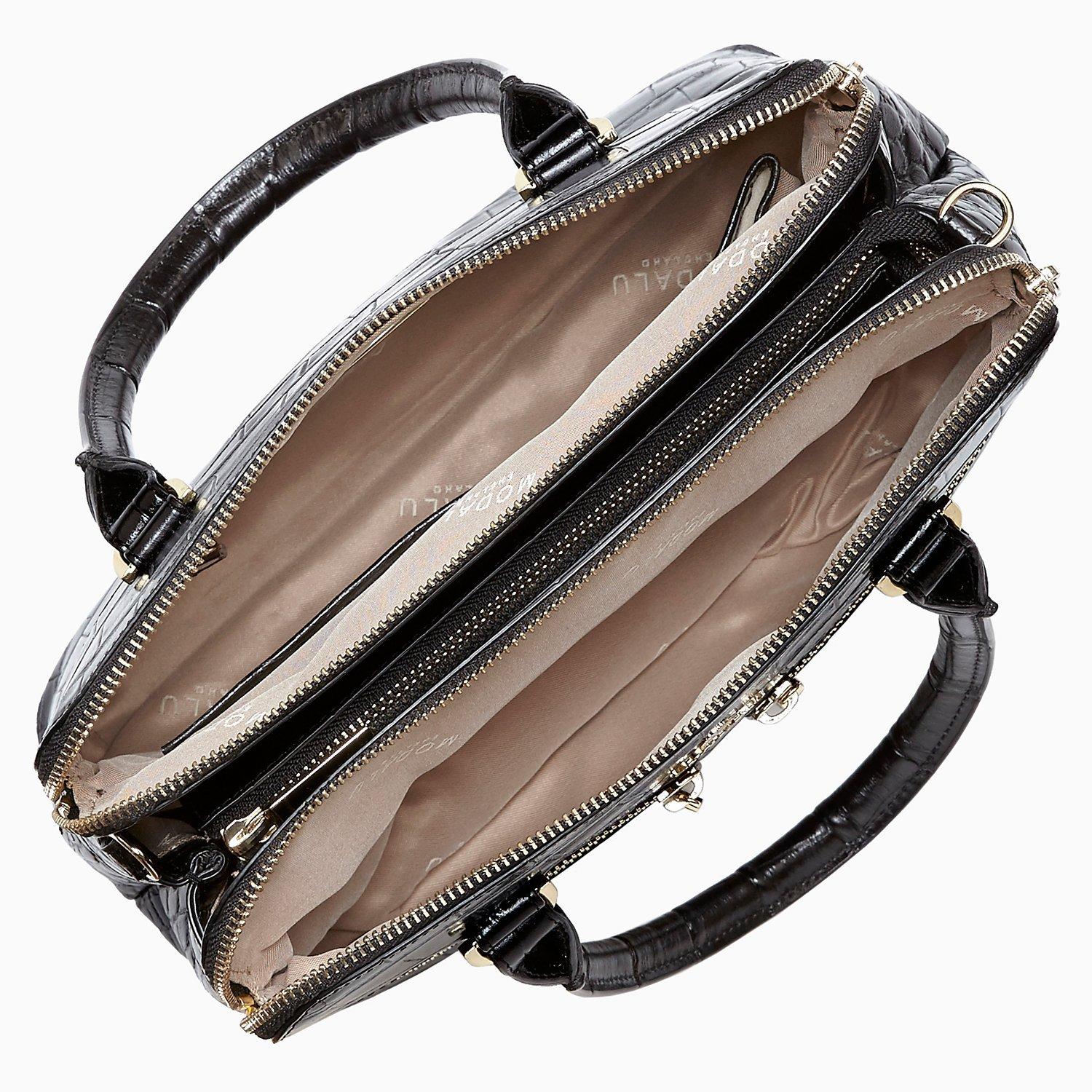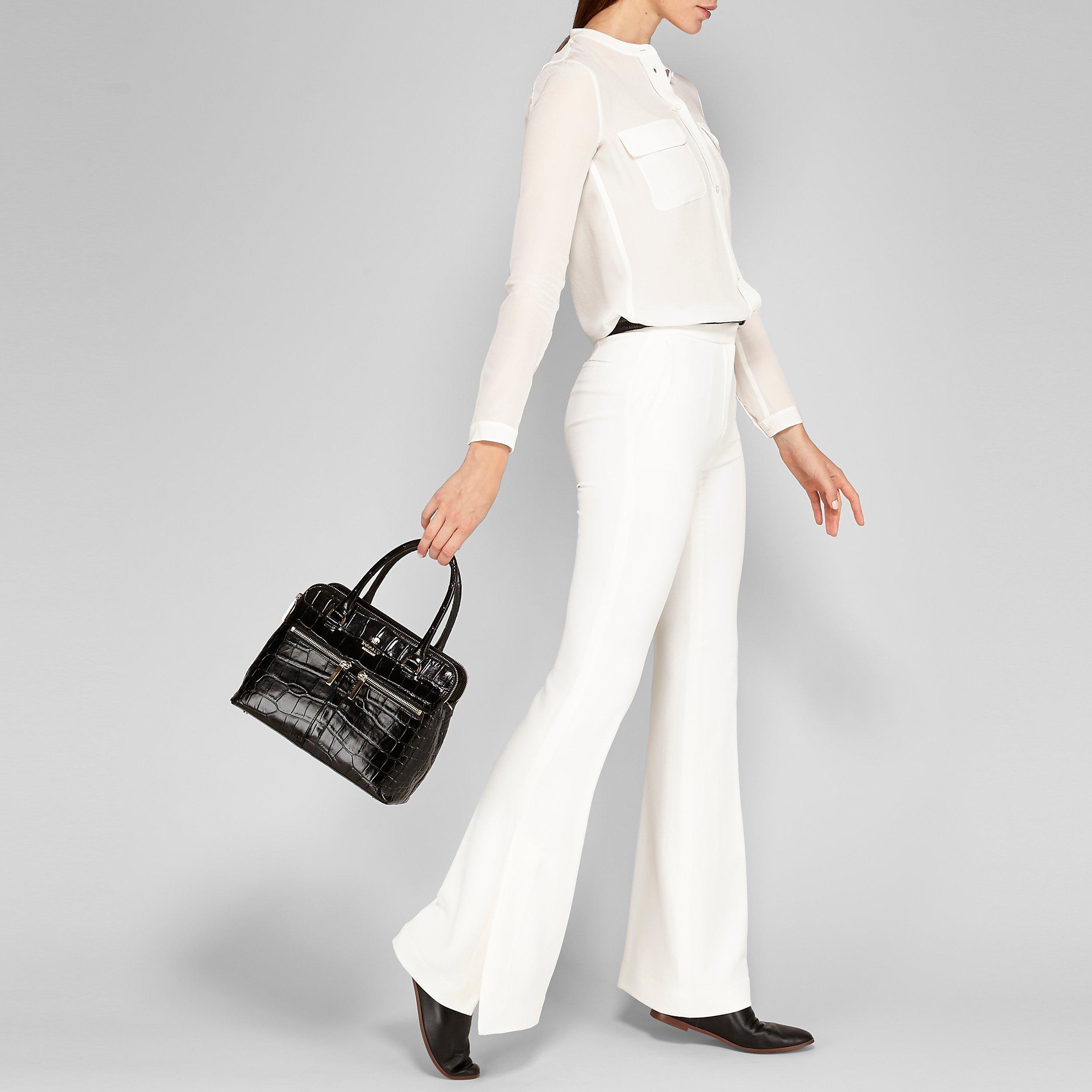 Combining function and elegance the bag features an adjustable and detachable shoulder strap as well as two rolled leather carry handles.