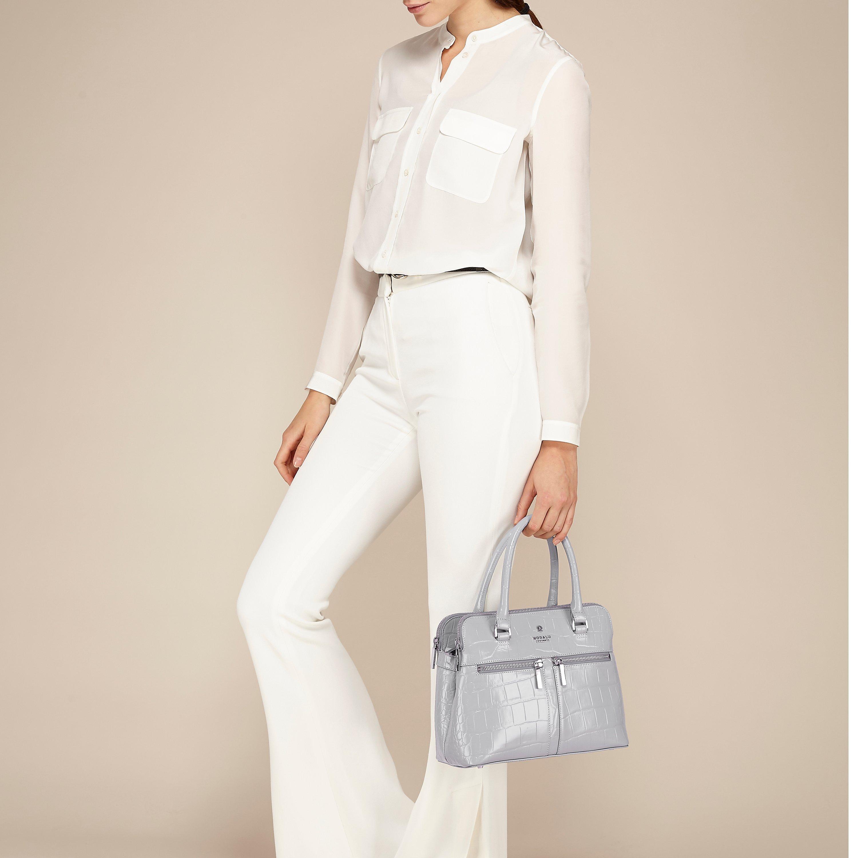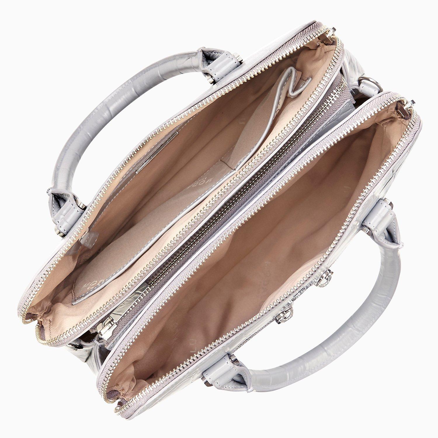 Combining function and elegance the bag features an adjustable and detachable shoulder strap as well as two rolled leather carry handles.