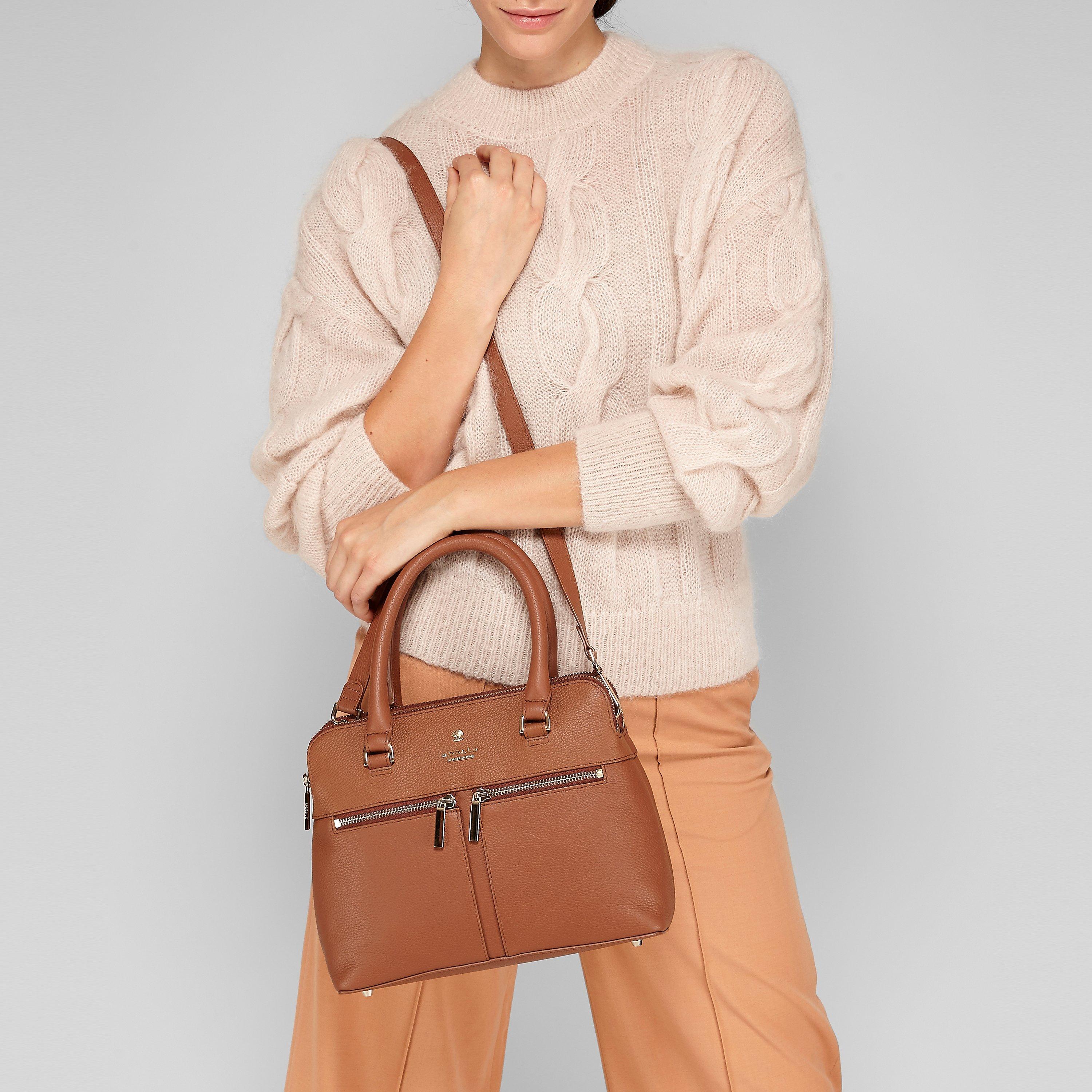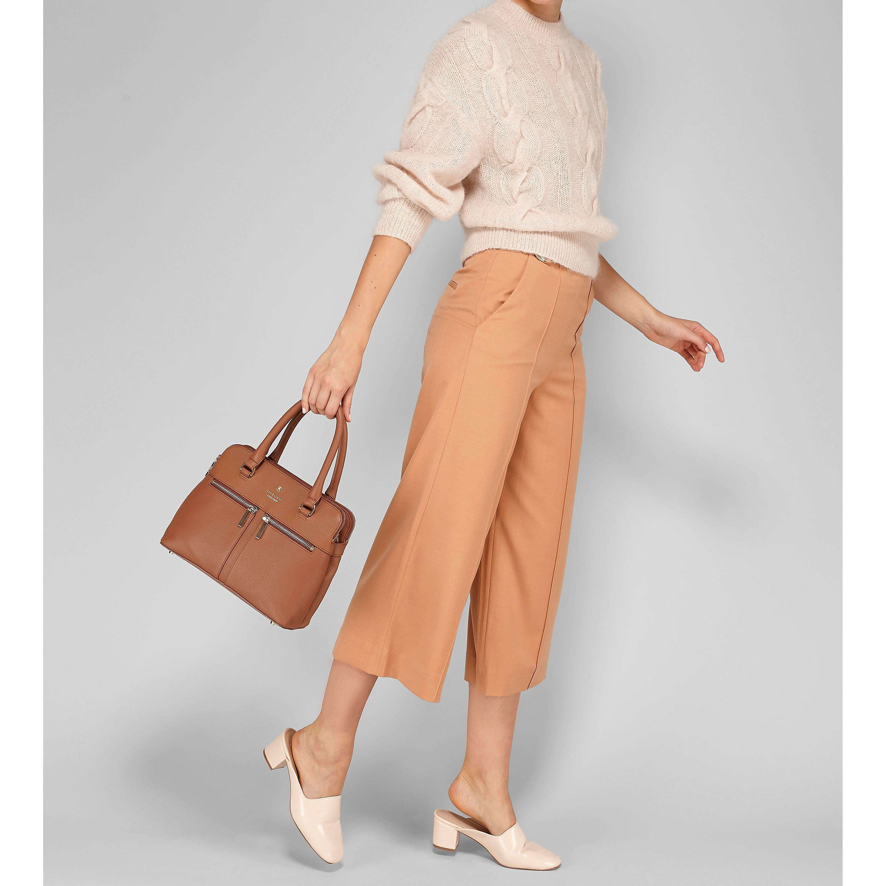 Combining function and elegance the bag features an adjustable and detachable shoulder strap as well as two rolled leather carry handles.