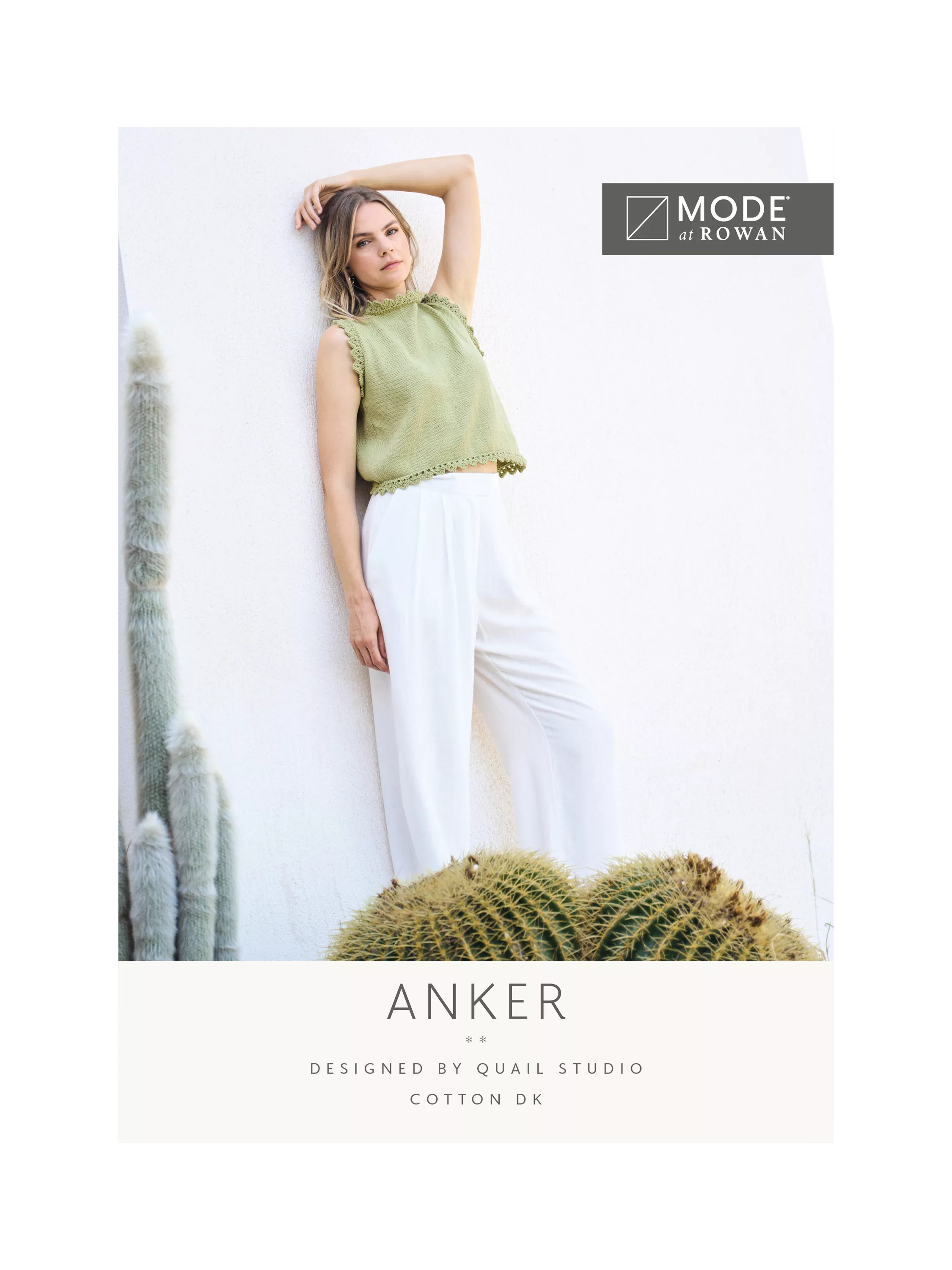 The Anker top is a breezy, sleeveless design crafted with MODE Cotton DK. Featuring a clean stocking stitch body and delicate crocheted edges at the neckline, armholes, and hem, it is a lightweight piece perfect for warmer weather.