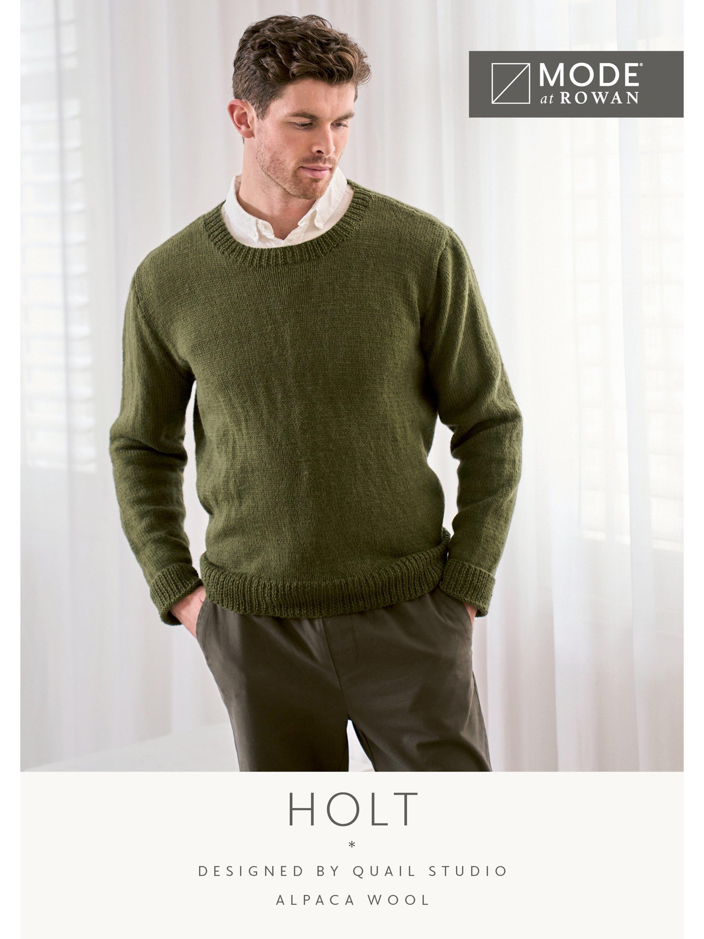 An essential addition to any wardrobe, the Holt men's sweater embodies timeless elegance. With a round neckline and a stockinette stitch design, this sweater is made from Alpaca Wool using a 3.75mm needle.