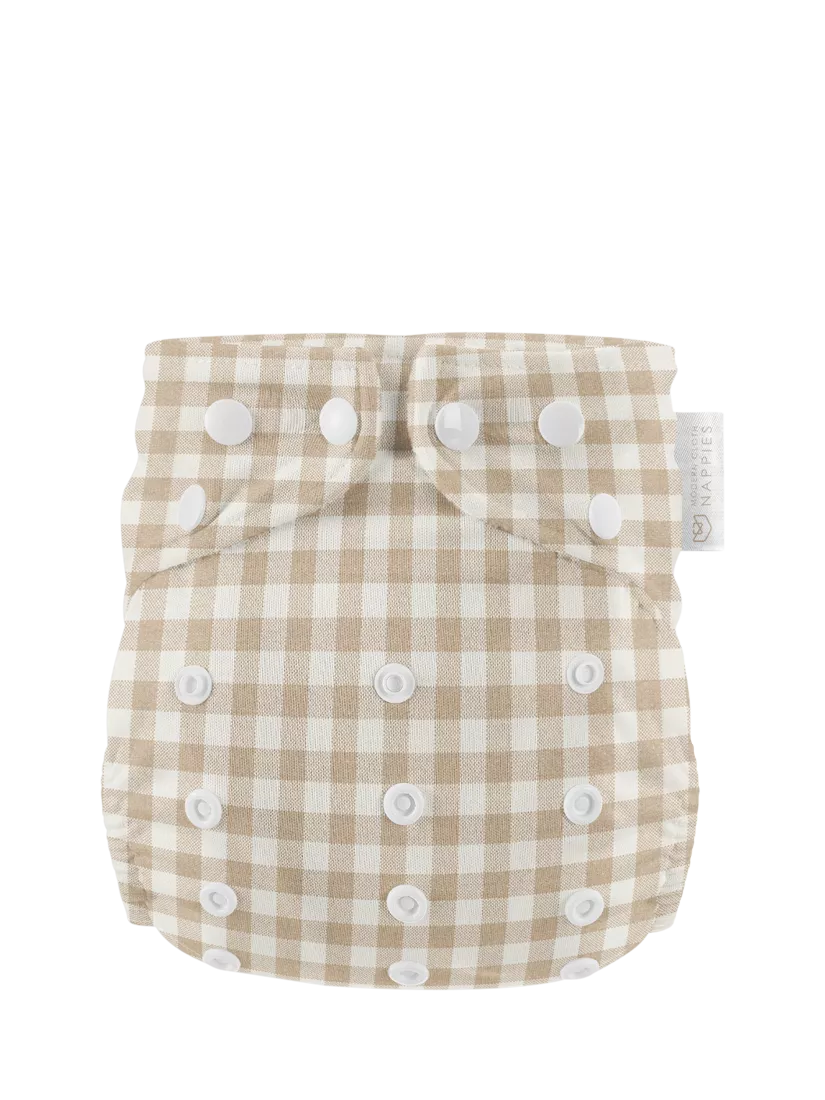 Modern Cloth NappiesReusable Nappy, Gingham Taupe, One Size