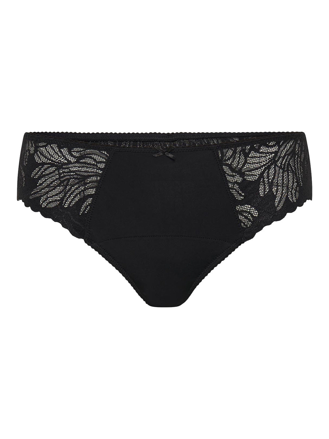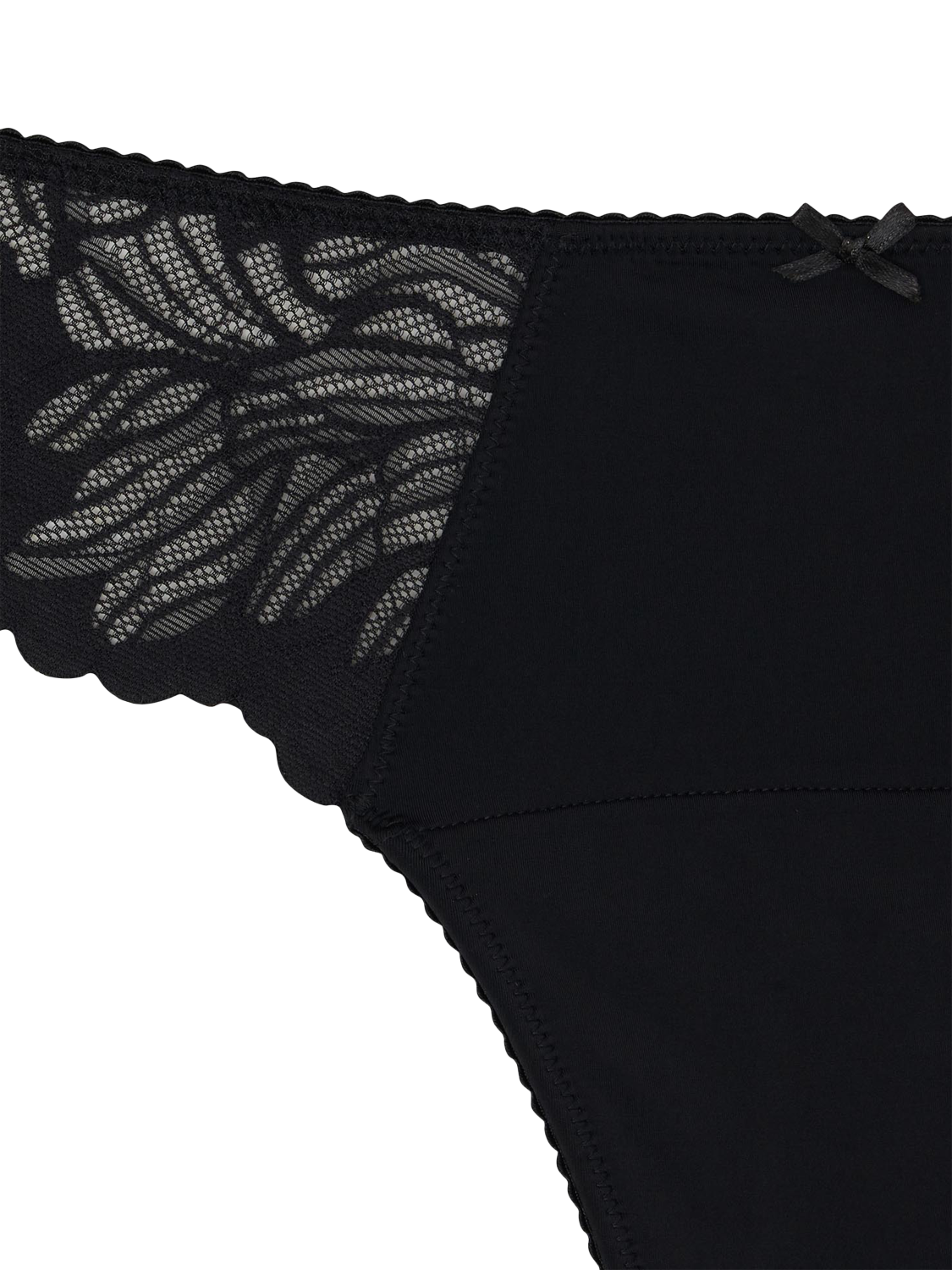 Made from the softest nylon, Modibodi's Camille Thong is a sensual yet functional brief with one-of-a-kind scalloped lace gallon design, comfortable elastic waistband, and patented leak-proof technology for protection on lighter period days.