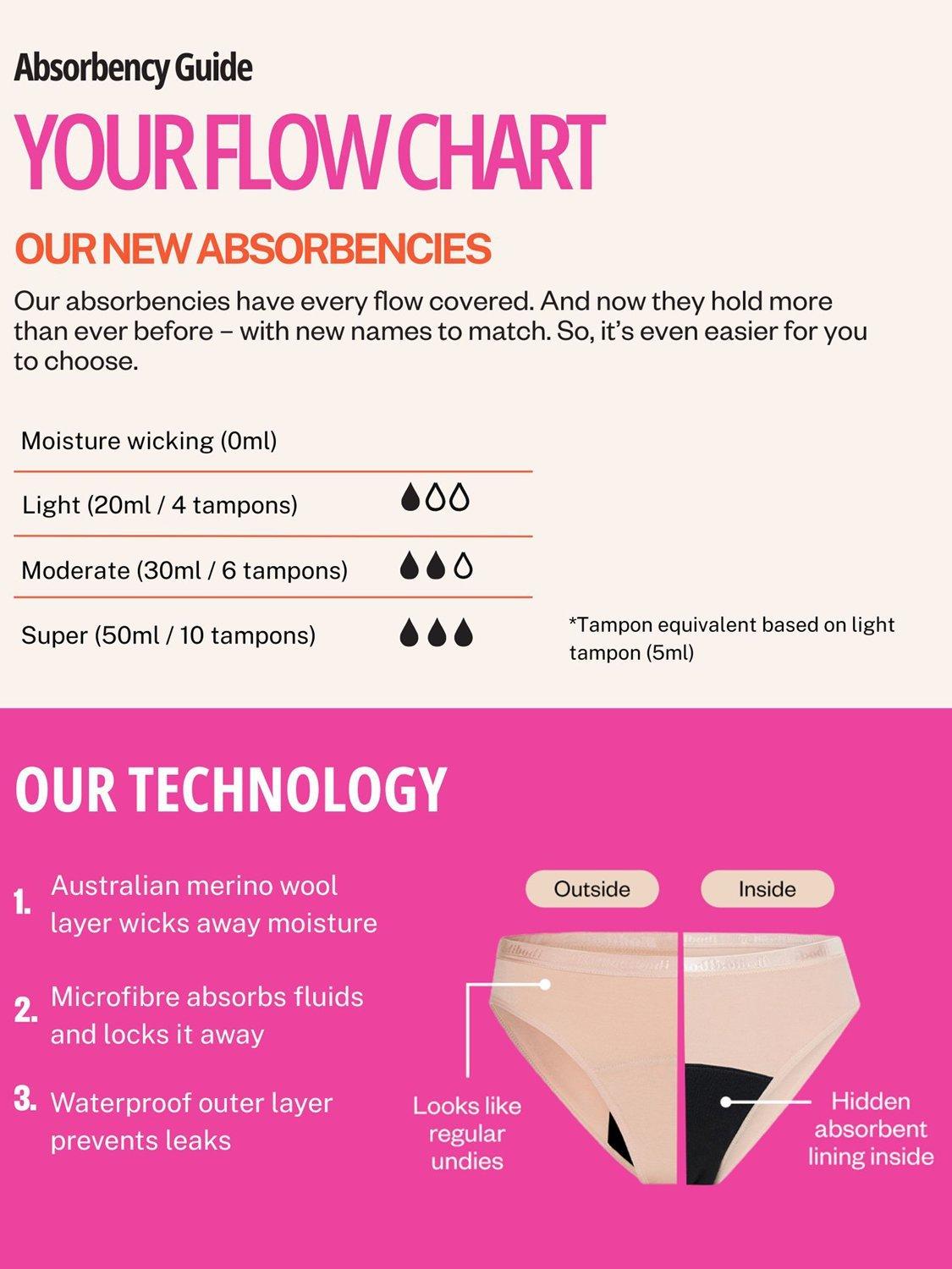 - Modibodi fits and feels like your regular underwear, but with a built-in patented (3mm) lining to absorb your period