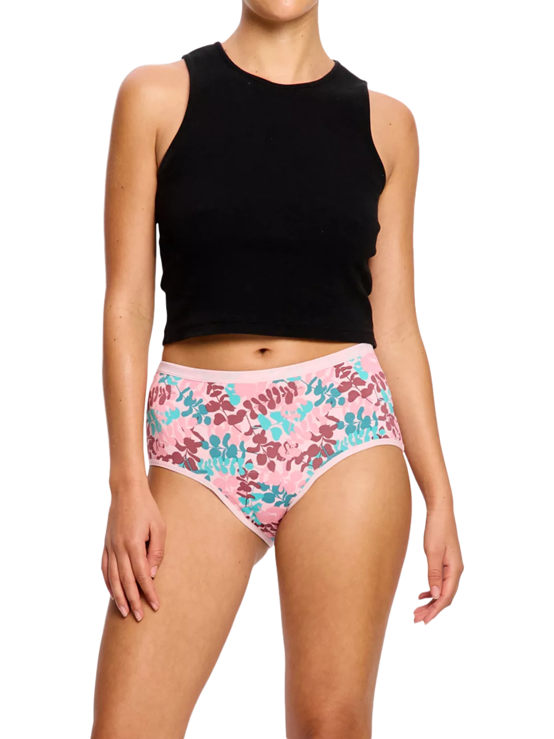 Designed with a flattering high waist, low leg and full bottom coverage, and a moderate absorbency to keep you feeling fresh, comfy, and dry all day long.