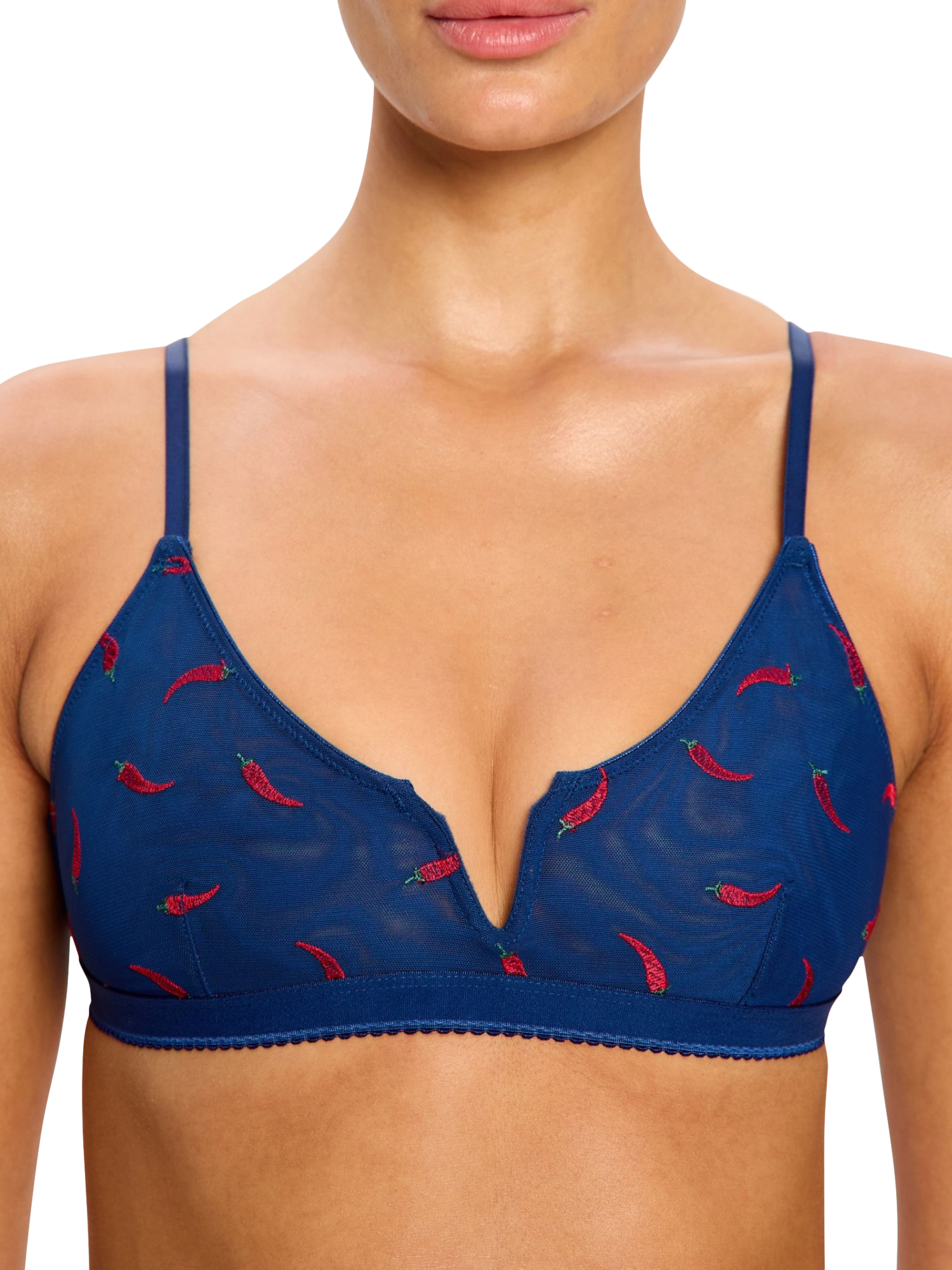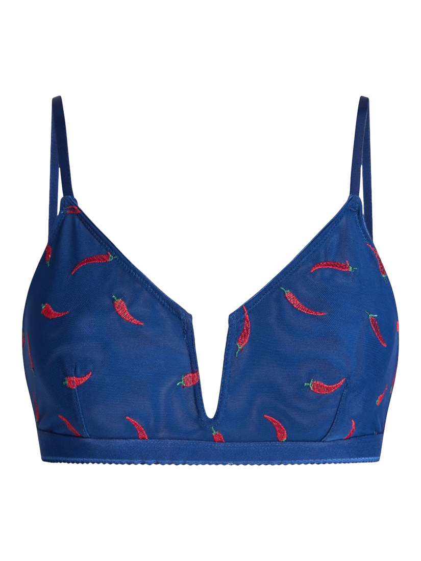 Crafted from soft fabrics, this bralette features embroidered chillis, along with a flattering V-neck detail. With excellent stretch and shape retention, this bralette is sure to become a favourite.