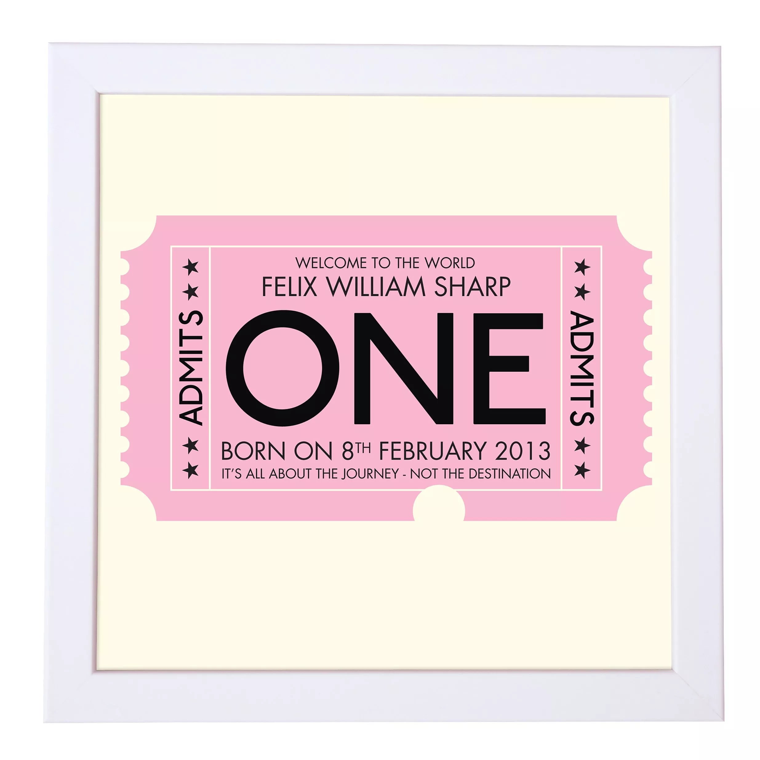 Modo Creative Personalised Admission Ticket Framed Print, 18 x 18cm, Pink