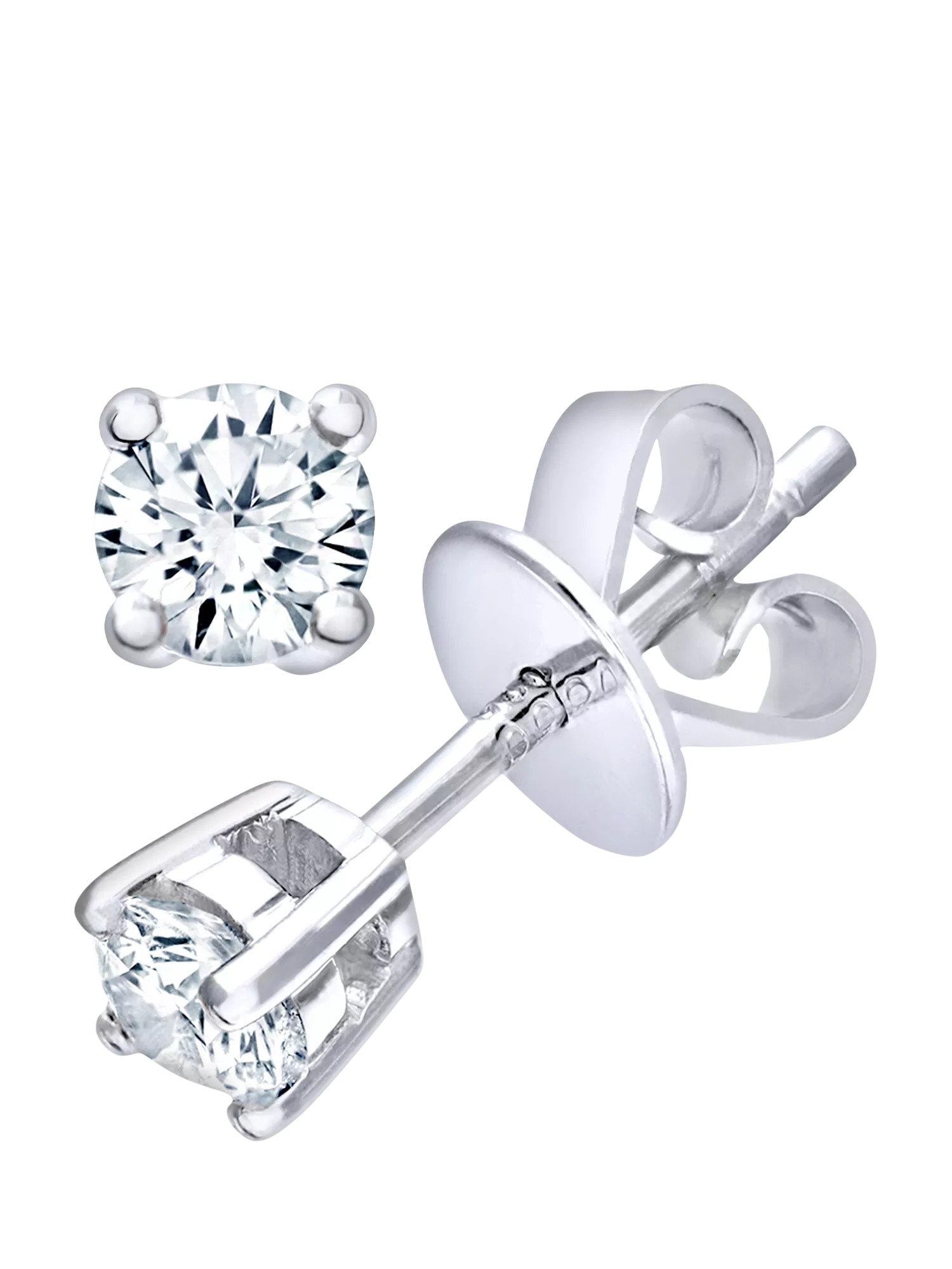 These solitaire stud earrings are crafted in 18ct white gold and feature round brilliant-cut diamonds with a total weight of 0.25 carats. Set in a classic four-claw design, the earrings allow maximum light to enhance each stone’s brilliance. Secured with traditional post and butterfly backs, they are designed for comfort and everyday wear, making them a timeless addition to any jewellery collection. Suitable for pierced ears only.