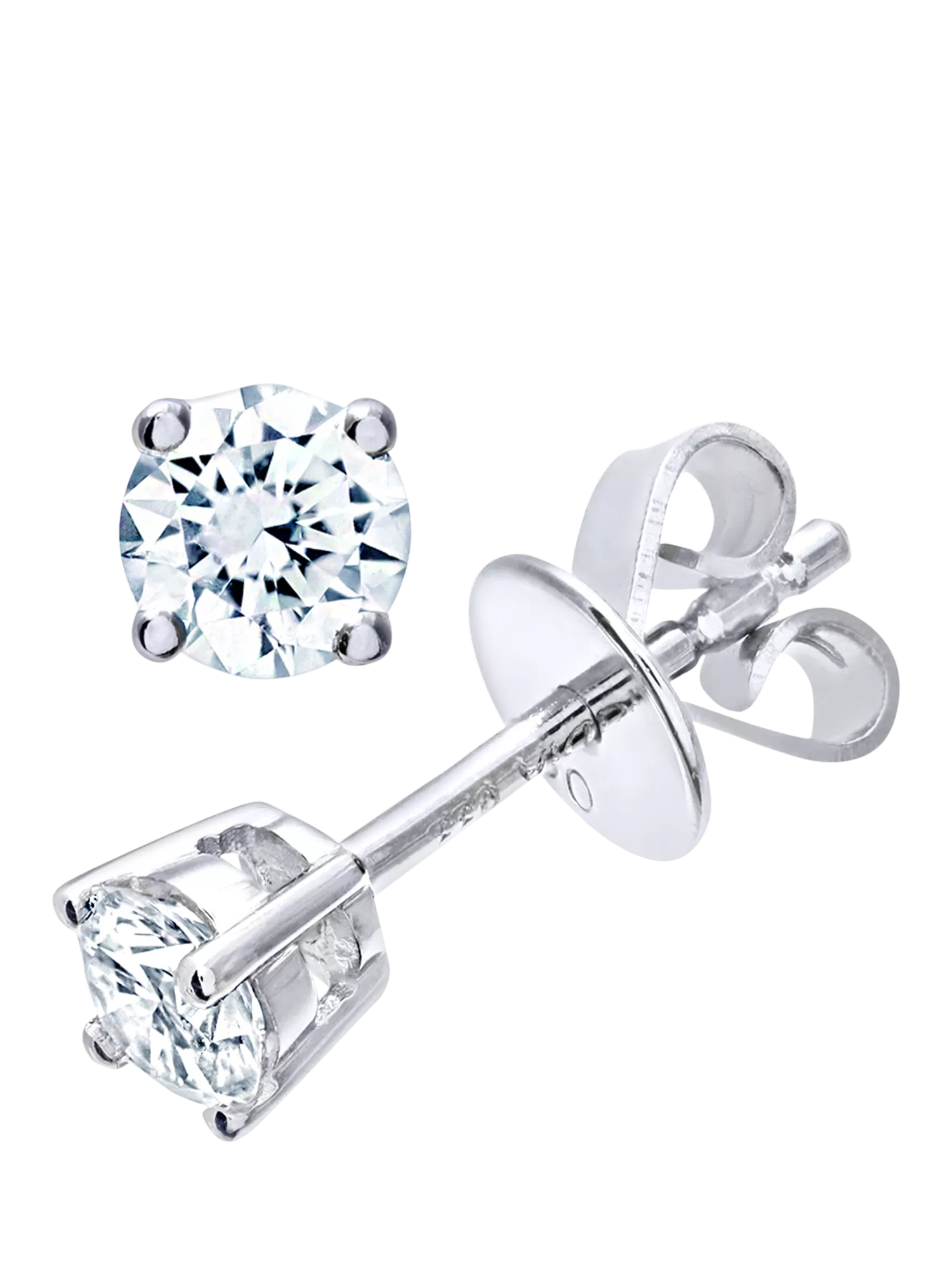 These solitaire stud earrings are crafted in 18ct white gold, and feature round brilliant-cut diamonds with a total weight of 0.33cts. Set in a classic four-claw design, the earrings allow maximum light to enhance each stone’s brilliance. Secured with traditional post and butterfly backs, they are designed for comfort and everyday wear, making them a timeless addition to any jewellery collection. Suitable for pierced ears only.