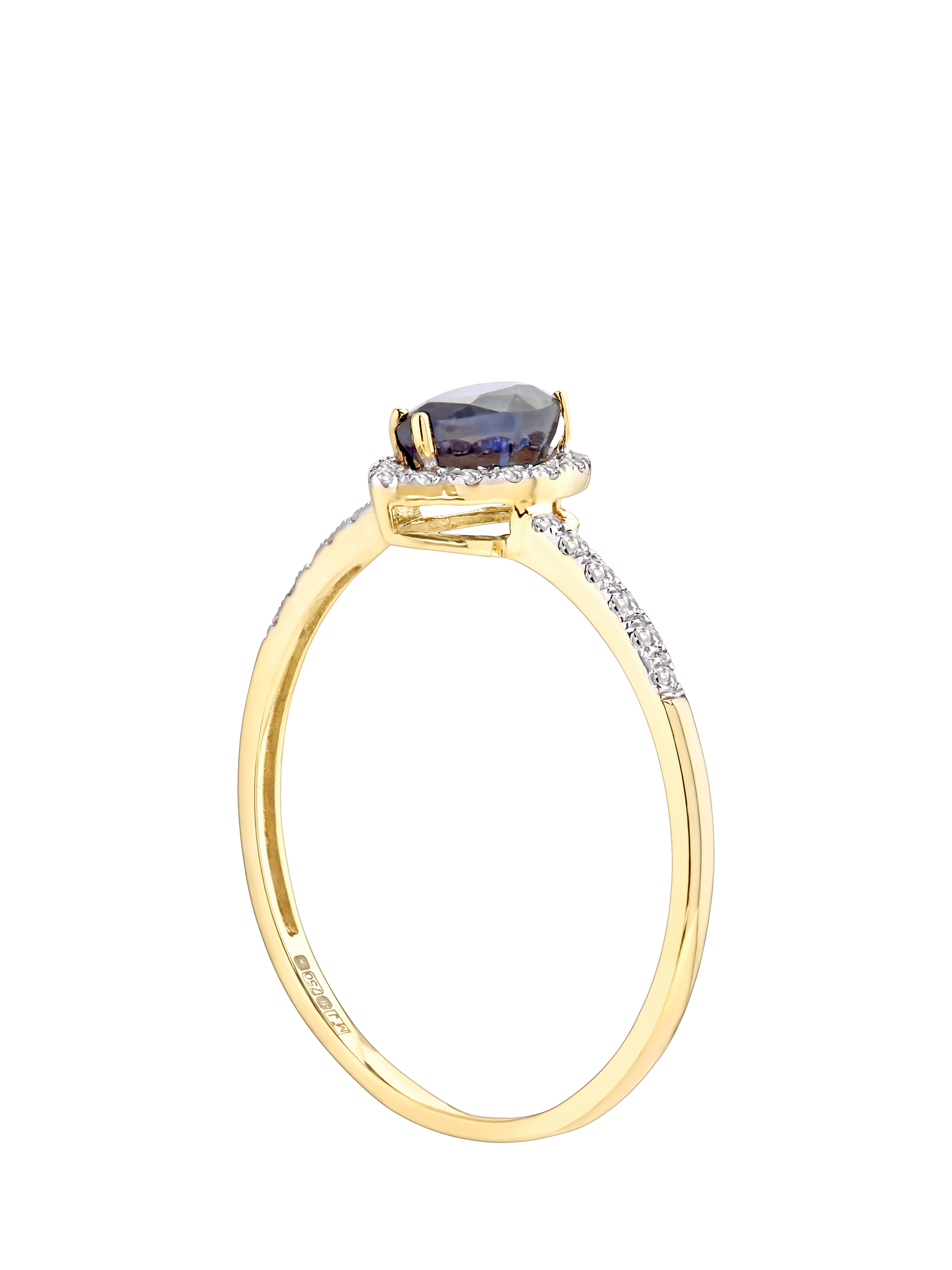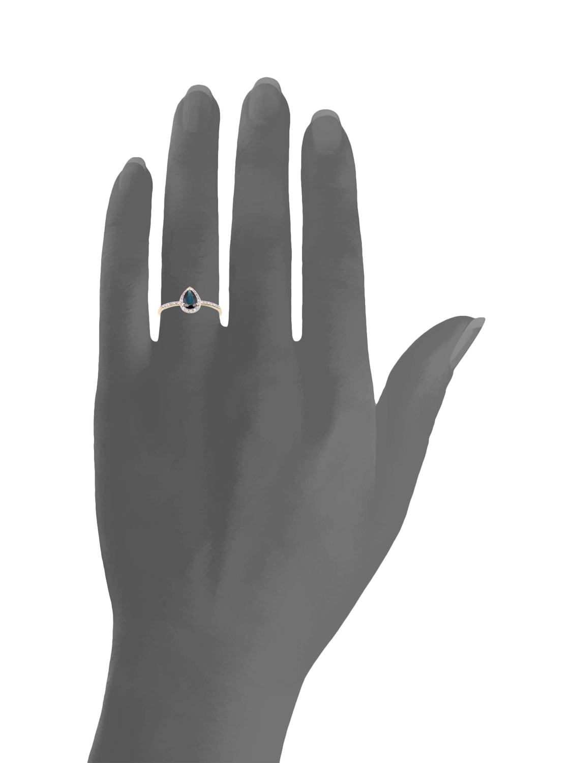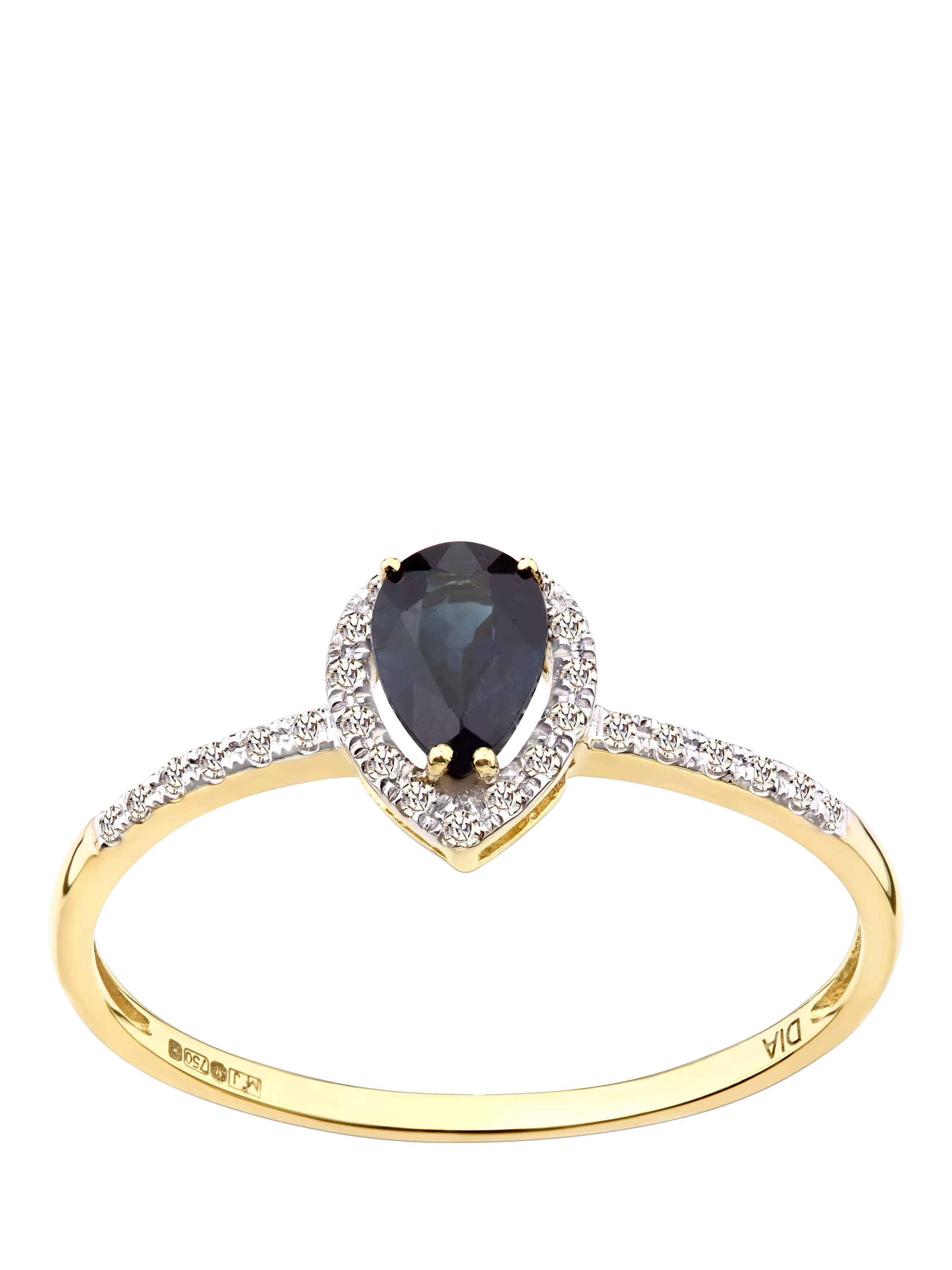 Crafted in 18ct yellow gold, this classic ring showcases a 6x4mm pear-shaped sapphire weighing 0.50ct, prized for its vivid blue hue and elegant form. Surrounded by 0.10ct of round brilliant-cut diamonds, the setting enhances the gemstone’s richness with refined sparkle. A chic and timeless choice for marking special moments or everyday elegance.