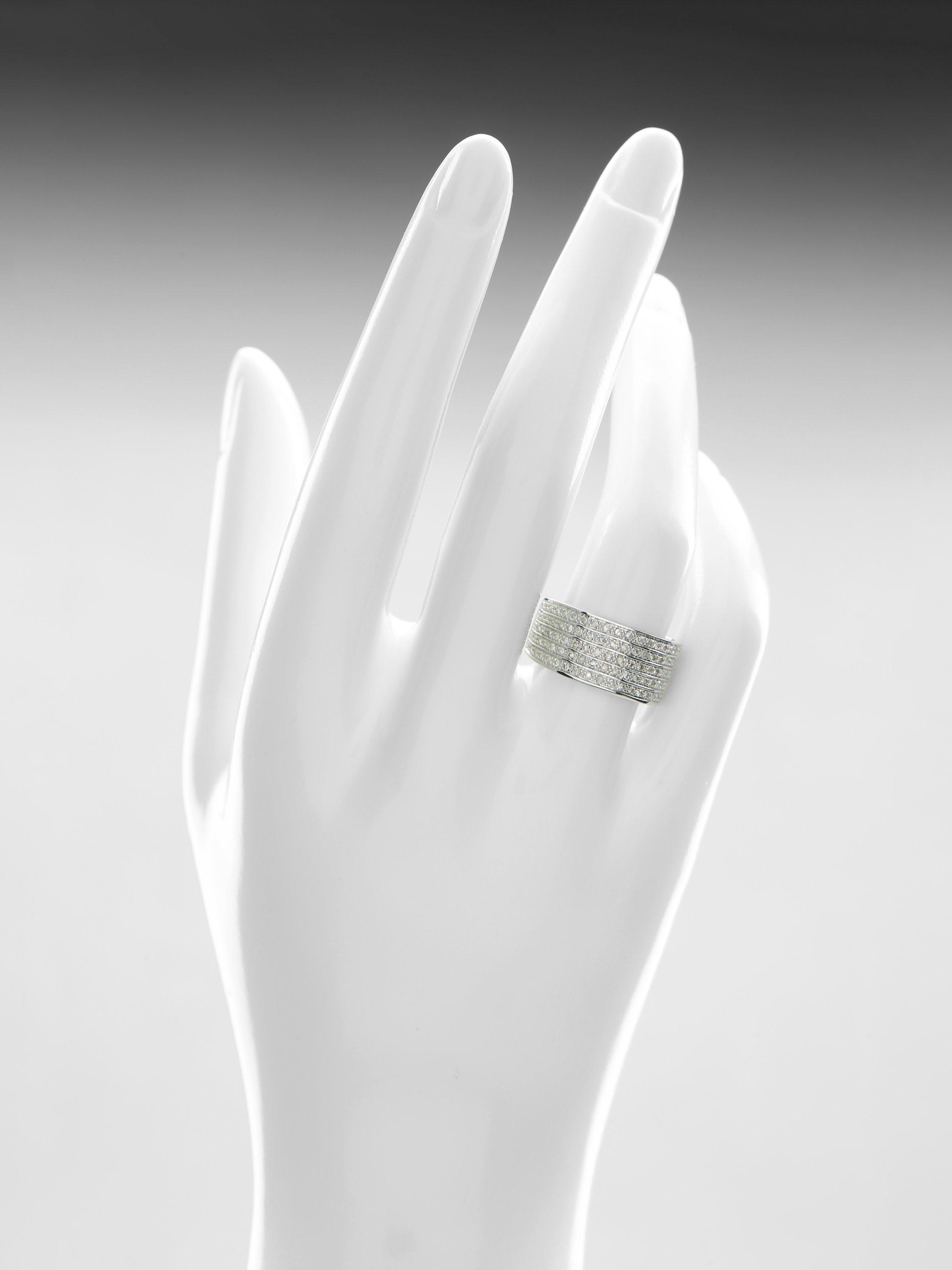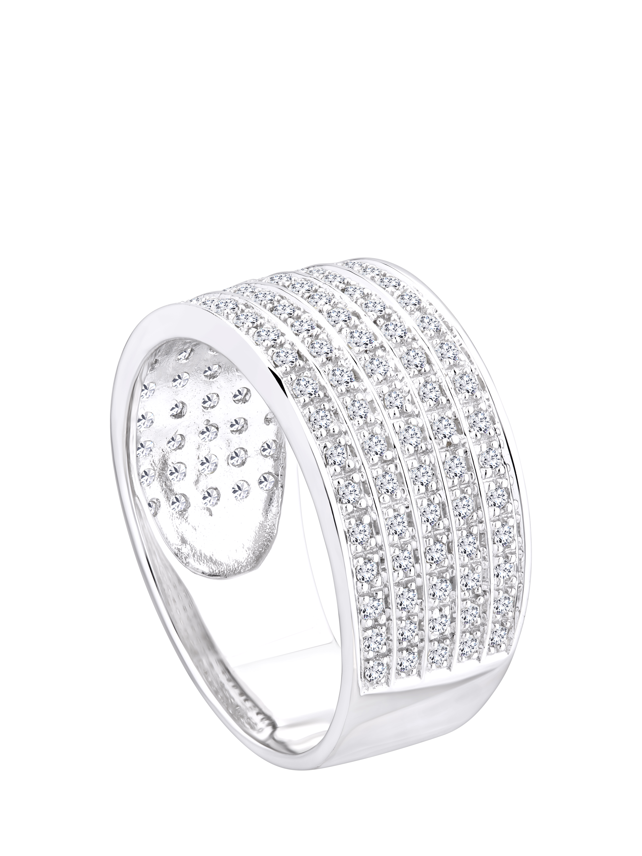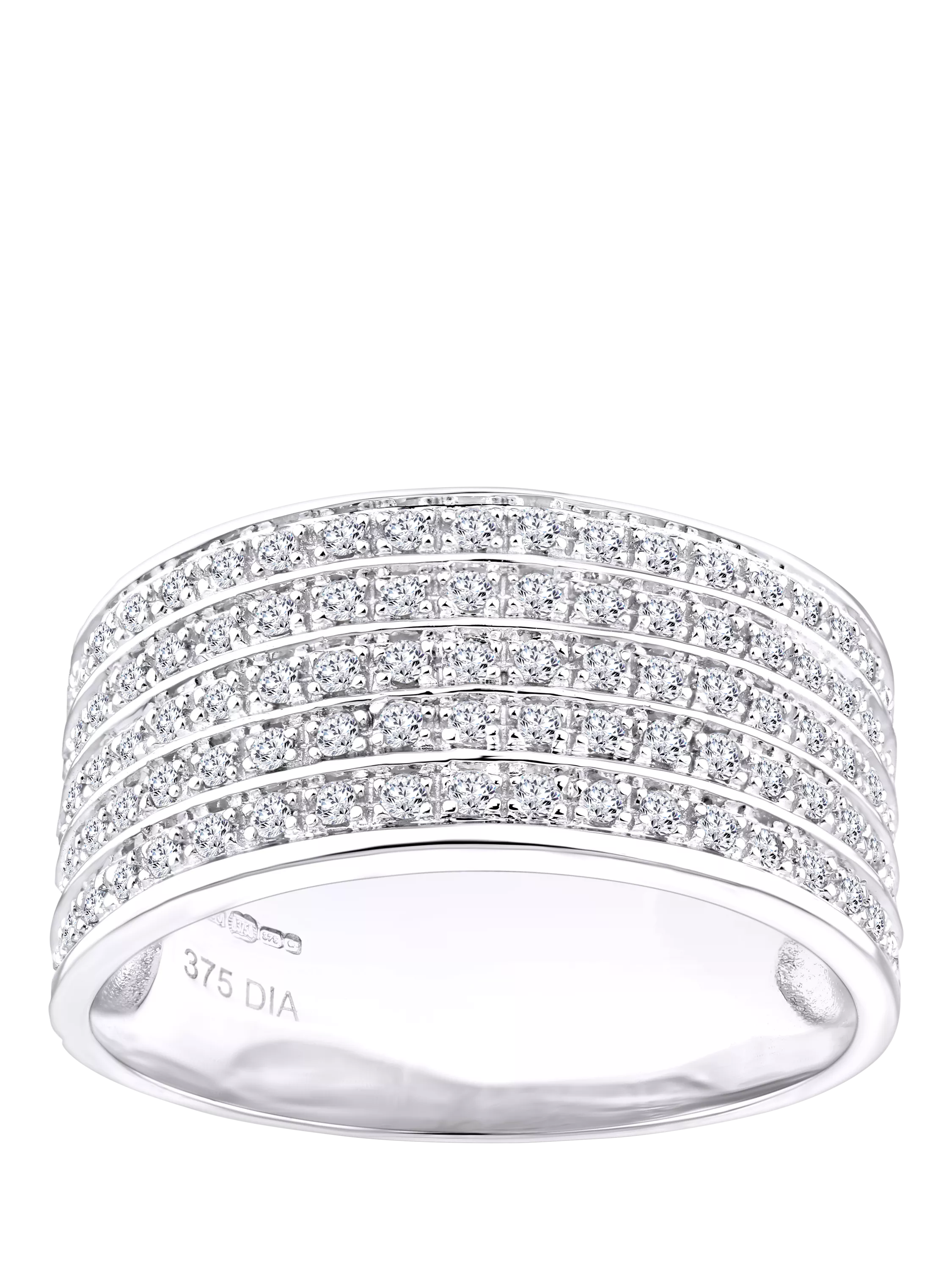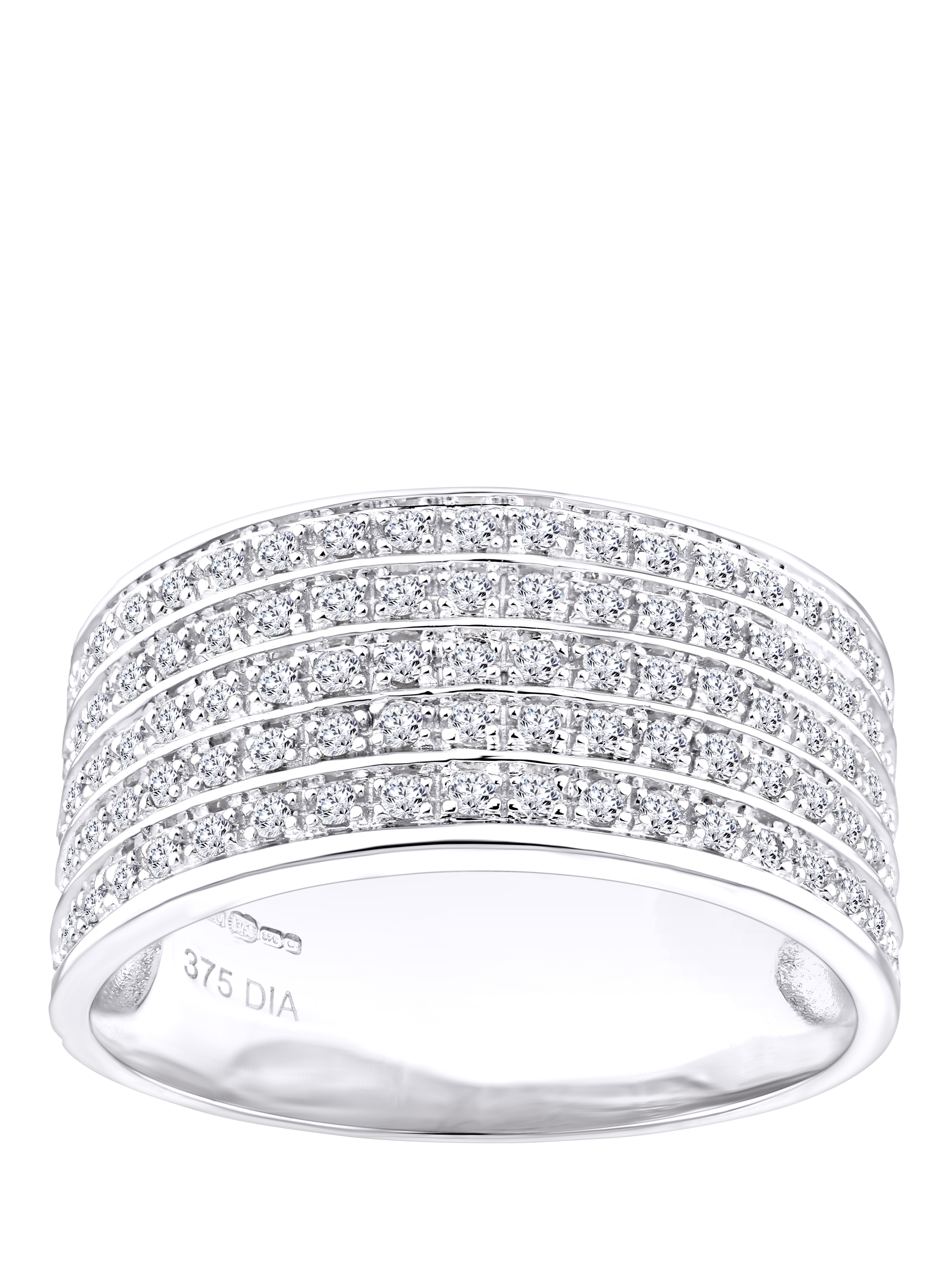 Crafted in elegant 9ct white gold, this striking half eternity ring features multi rows of round brilliant-cut diamonds, with a total diamond weight of 0.50 carats. The wide band design is set to impress, offering a bold, radiant display of sparkle that captures attention from every angle. A contemporary take on a classic style, this ring is perfect for those who love refined glamour with standout appeal. Its impactful presence makes it an ideal choice for celebrating significant milestones or simply elevating everyday luxury.