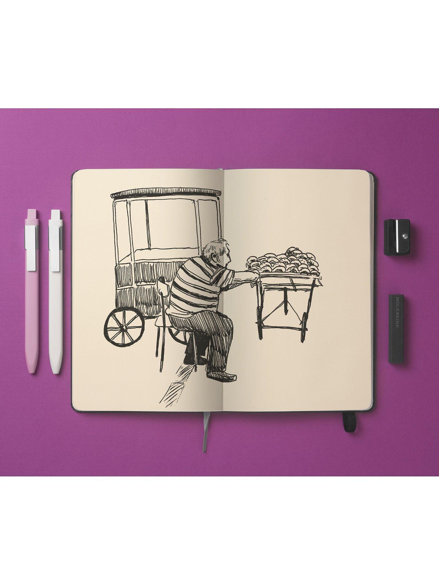 The Moleskine Sketchbook is made with top quality heavy paper and is perfect for on-the-go drawings, sketches and tempera colours.
