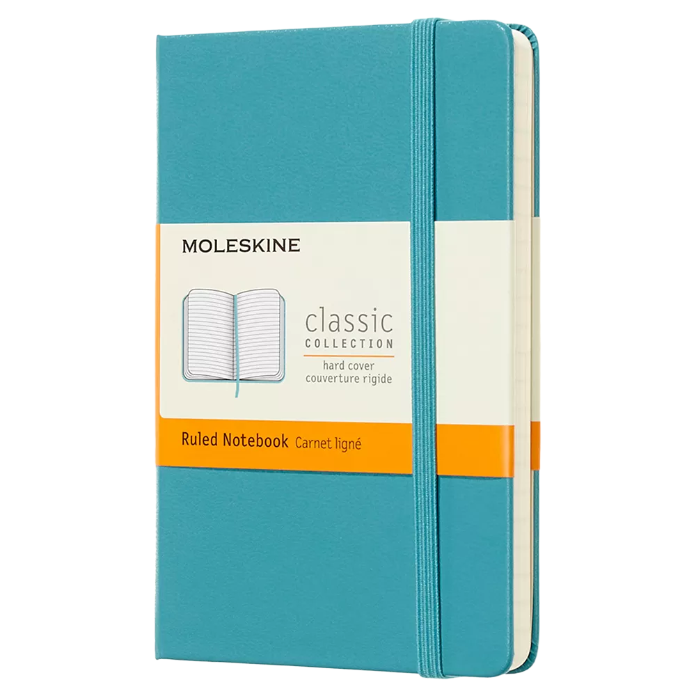 The Classic Collection featuring bold new colors and ruled pages just waiting to be filled with your ideas. Including all the characteristic elements of the legendary notebook: rounded corners, ivory pages, elastic closure, bookmark ribbon and expandable back pocket - enclosed within a colorful hard cover.