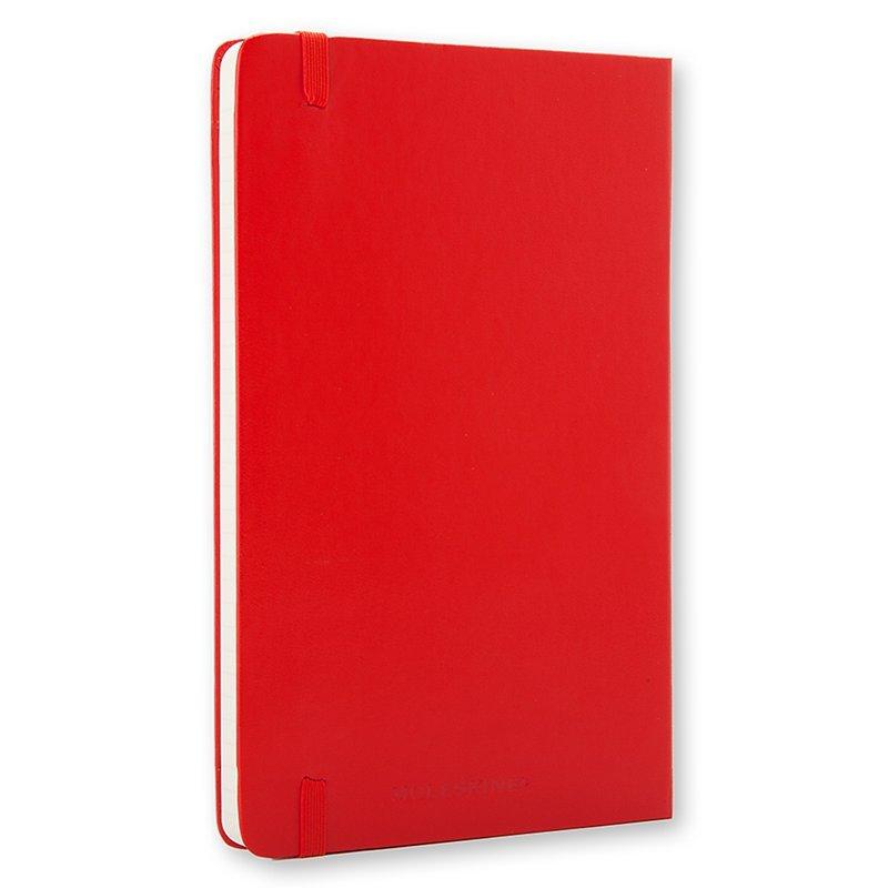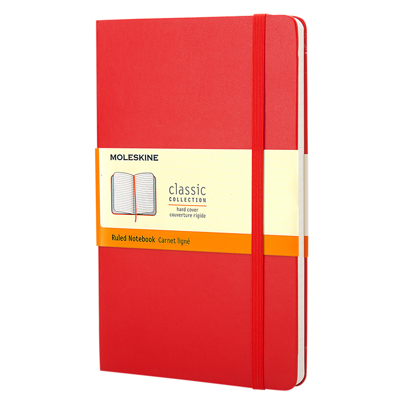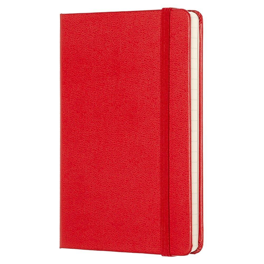 This Moleskine Pocket Ruled Notebook is bound in cardboard, with a 'moleskine' cover having rounded corners and an elastic enclosure.