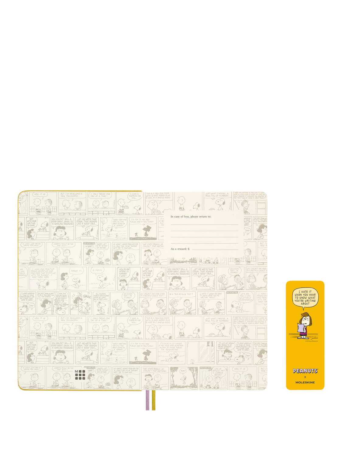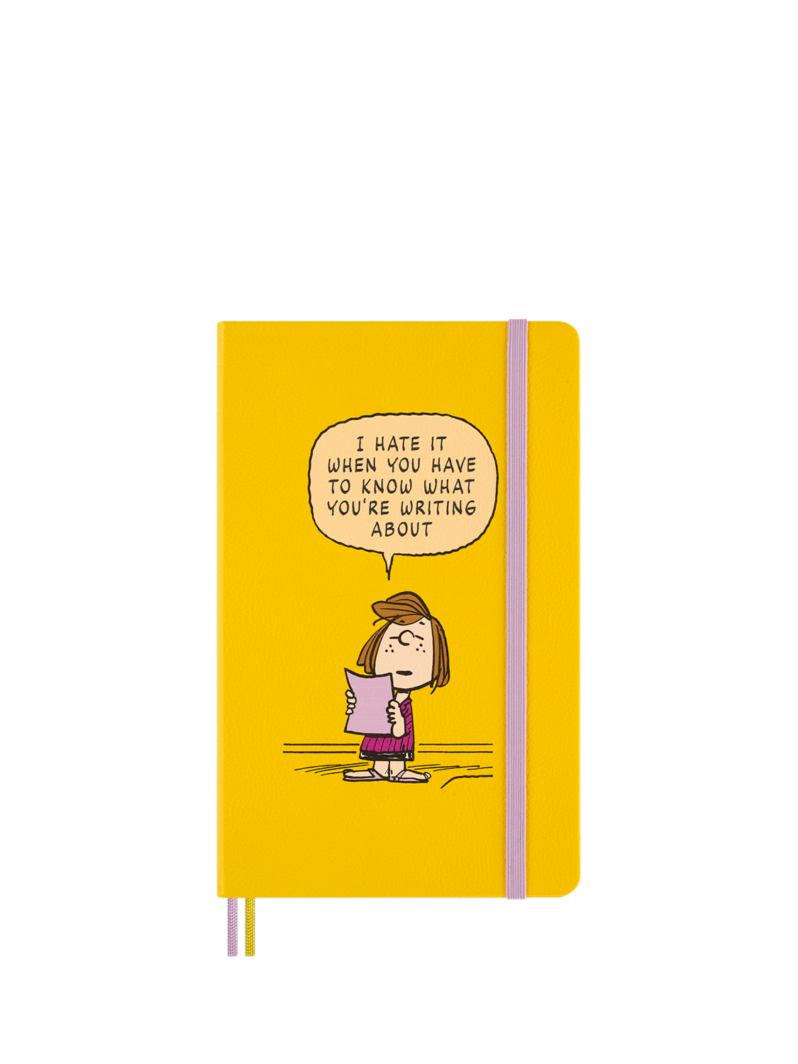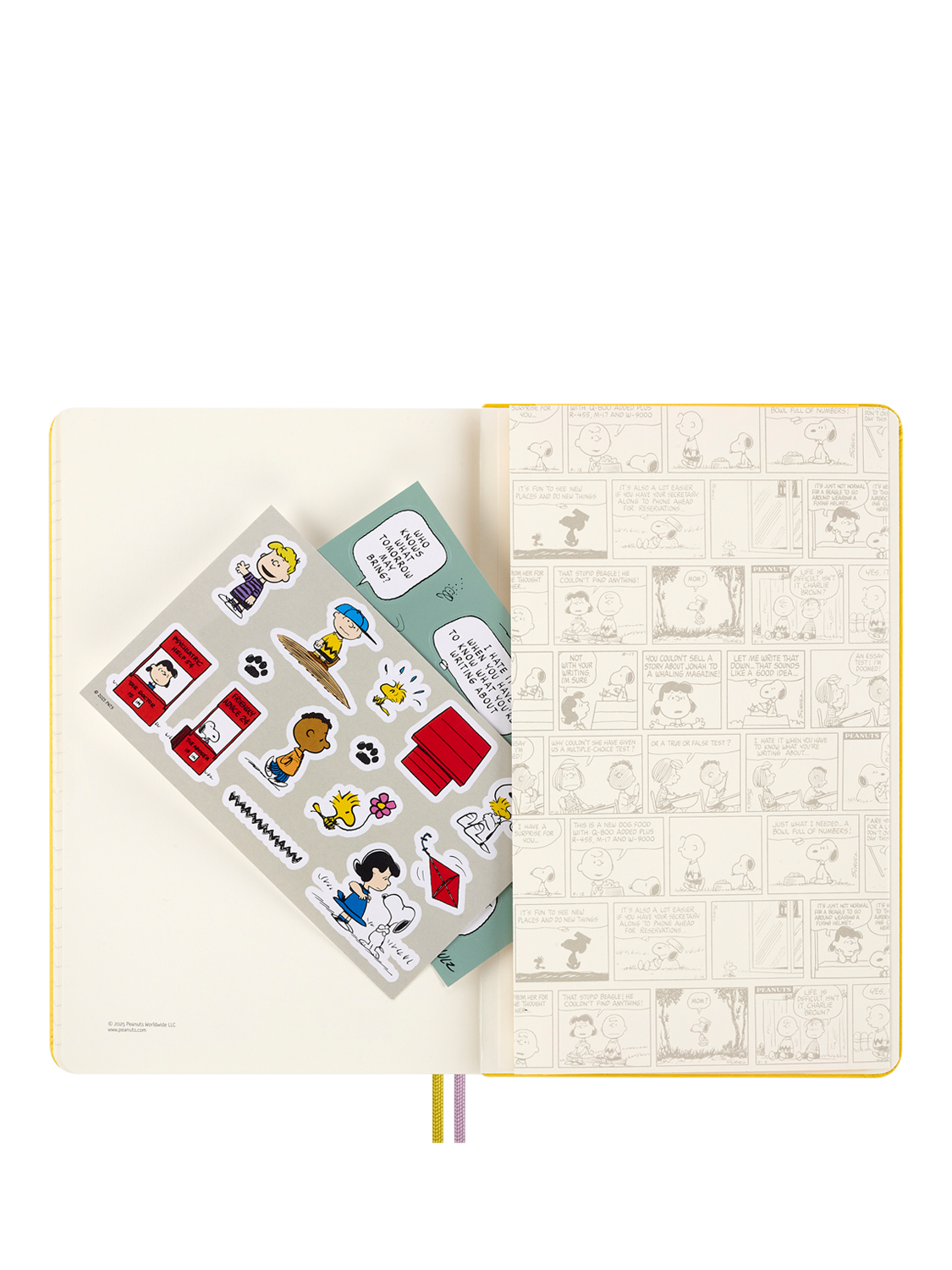 Blending creativity with functionality, it features Peanuts-themed stickers, a paper bookmark, and bespoke endpapers. The durable hard cover, elastic band closure, and two ribbon bookmarks keep your notes protected and neatly organised.