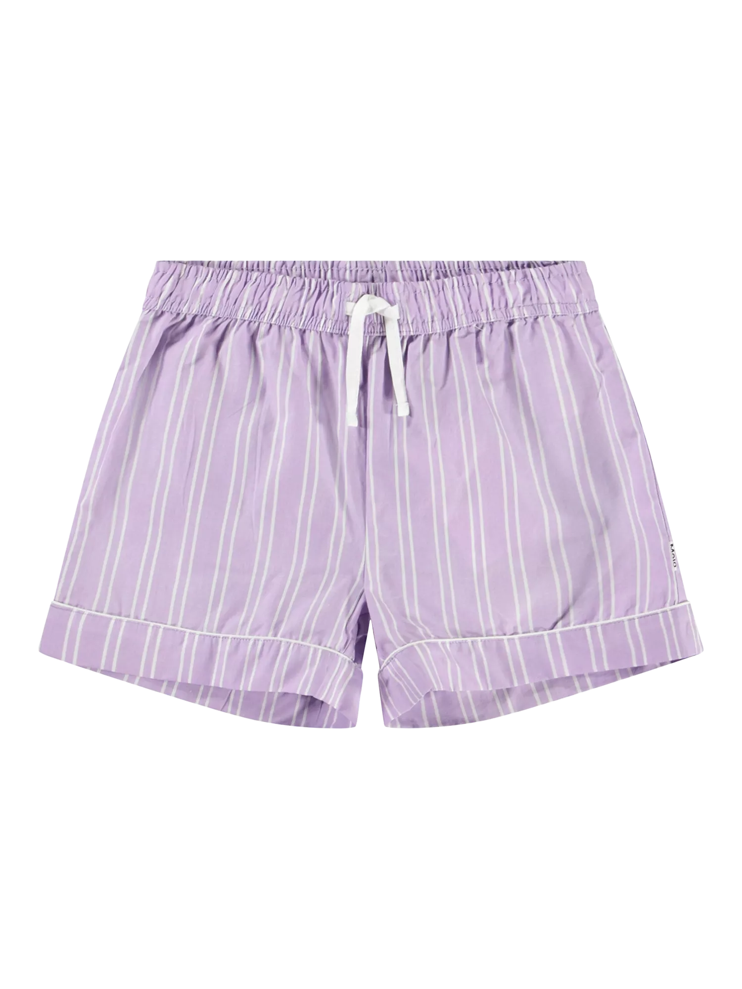 Shorts made from organic cotton, featuring an elastic waistband and a drawstring closure for adjustable comfort. These shorts have a loose fit and are cuffed with a delicate trim for a stylish touch.