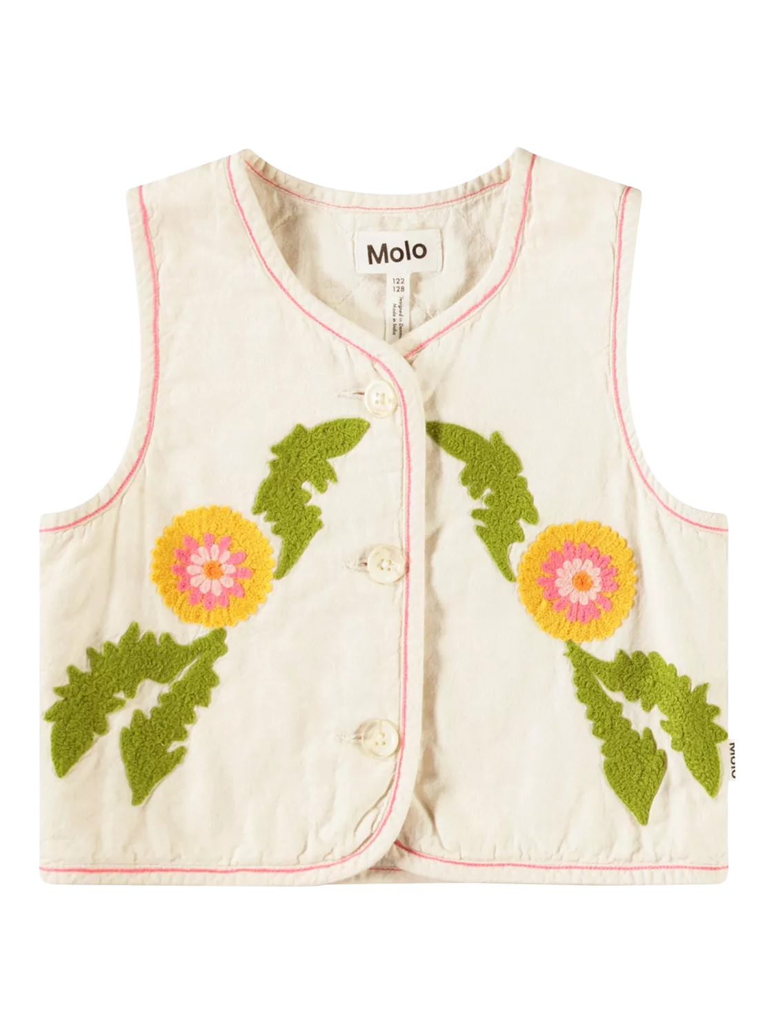 Embroidered cotton short vest waistcoat style with beautiful dandelion design on the front. Perfect for layering.