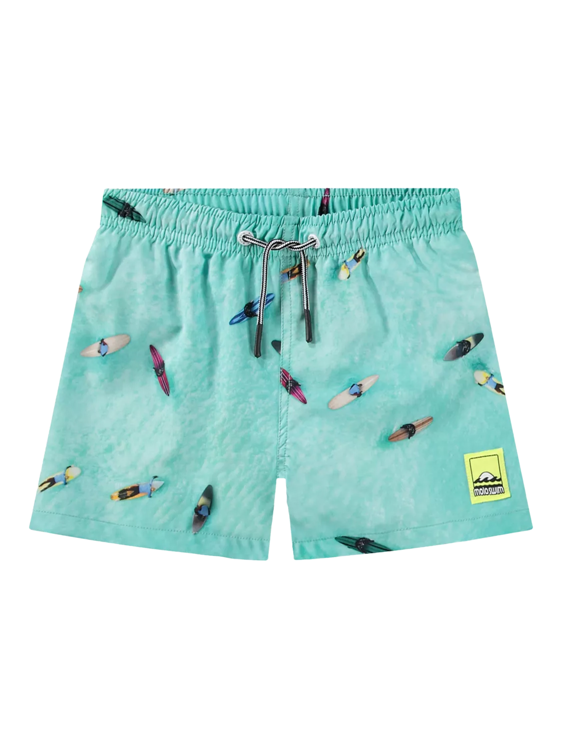 These printed swim shorts have an elastic waist with ties and a neon Molo branded label on the front as well as a practical back pocket. With 50+ UV protection.