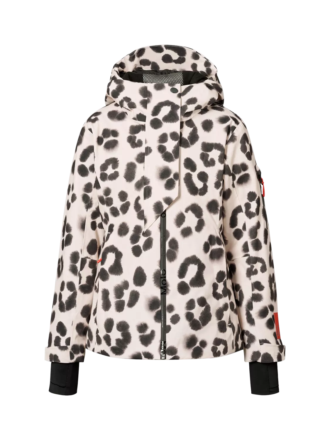 This leopard print winter jacket from Molo has a lined hood, a practical zipper with flap, and waterproof zipper pockets. There is a pocket on the sleeve for a ski pass and an interior pocket for extra storage. The jacket has a wind flap around the waist, Velcro around the wrists, and sleeve openings with thumb holes, which effectively keep snow, wind, and water out. Furthermore, the jacket is lined with fleece and padded with 3M Thinsulate and a text reflector to be visible in traffic.
