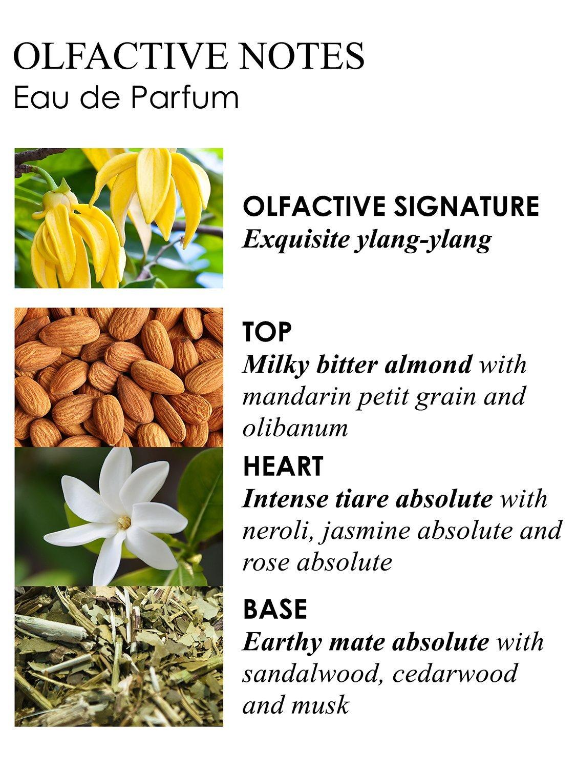 Transport the senses to languid mornings on an idyllic island with this fragrance. Solar notes of bitter almond soften into neroli and tiare absolute, culminating in a creamy trail of sandalwood and musk.