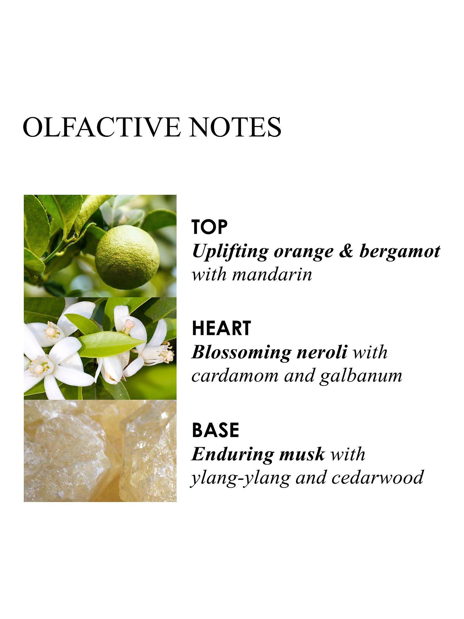 The fragrance: A Sevillian courtyard of sun-dappled citrus trees. Lively airs of sweet orange, sparkling bergamot and blossoming neroli dance a scented flamenco. Green, vibrant galbanum and opulent ylang-ylang slip into enduring musk. Awaken your spirits; uplift with our modern classic, plucked from the Naranja grove.
