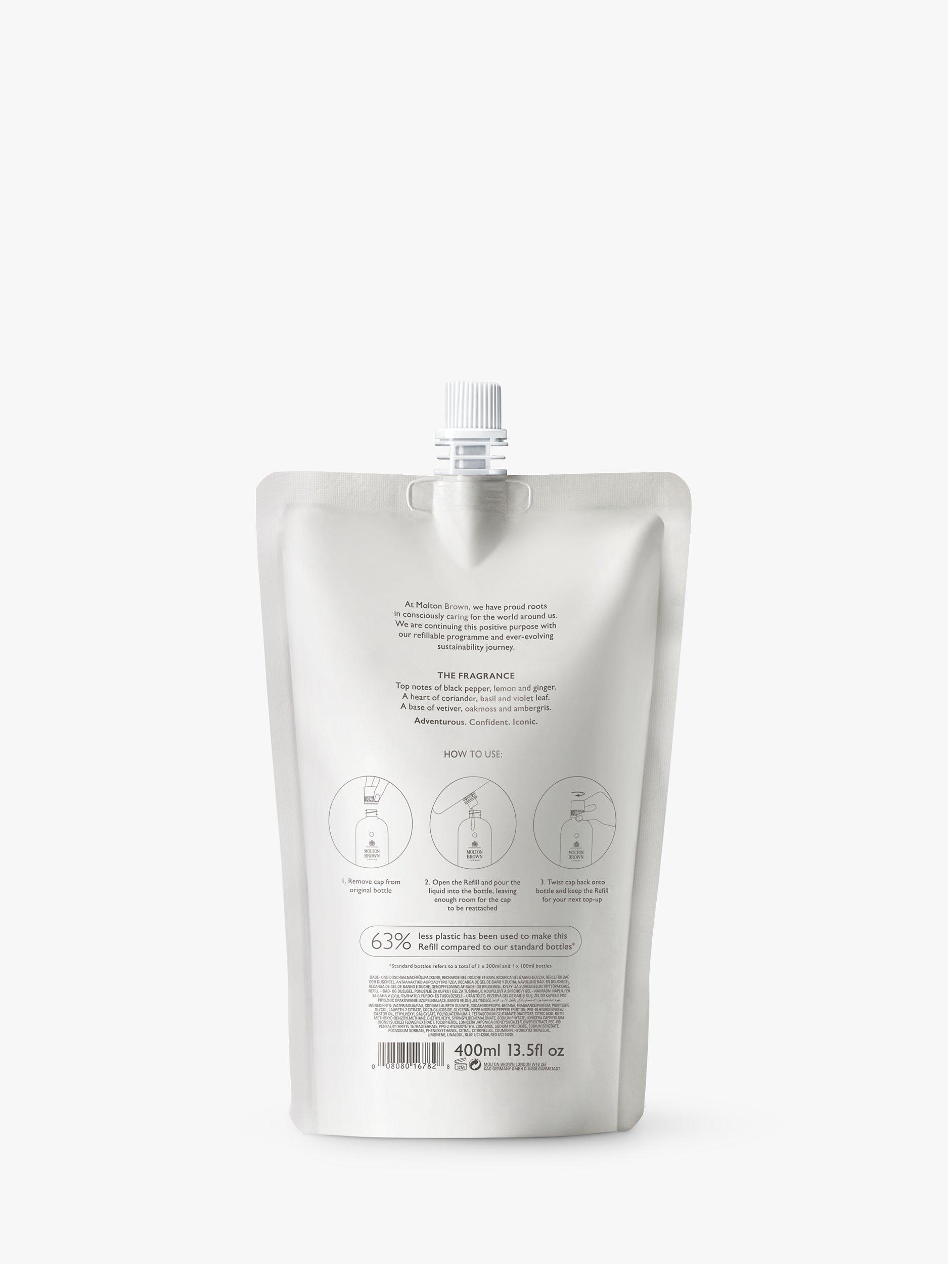 Our energising, bestselling Bath & Shower Gel in a Refill Pouch – a more sustainable option to enjoy your favourites. Re-charge Black Pepper is a woody-spicy fragrance with notes of black pepper, coriander and vetiver. 63% less plastic has been used to make this Refill compared to our standard bottles (a total of 1 x 300ml and 1 x 100ml bottles).