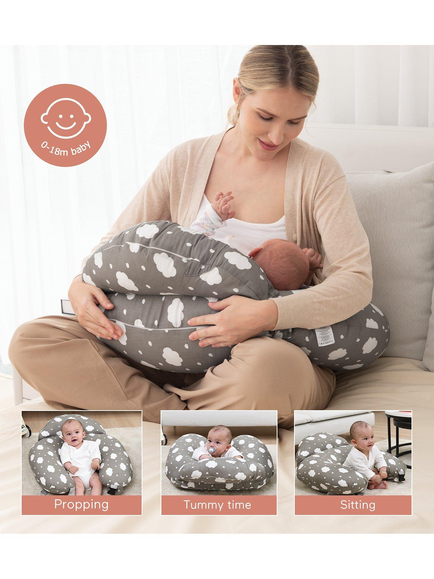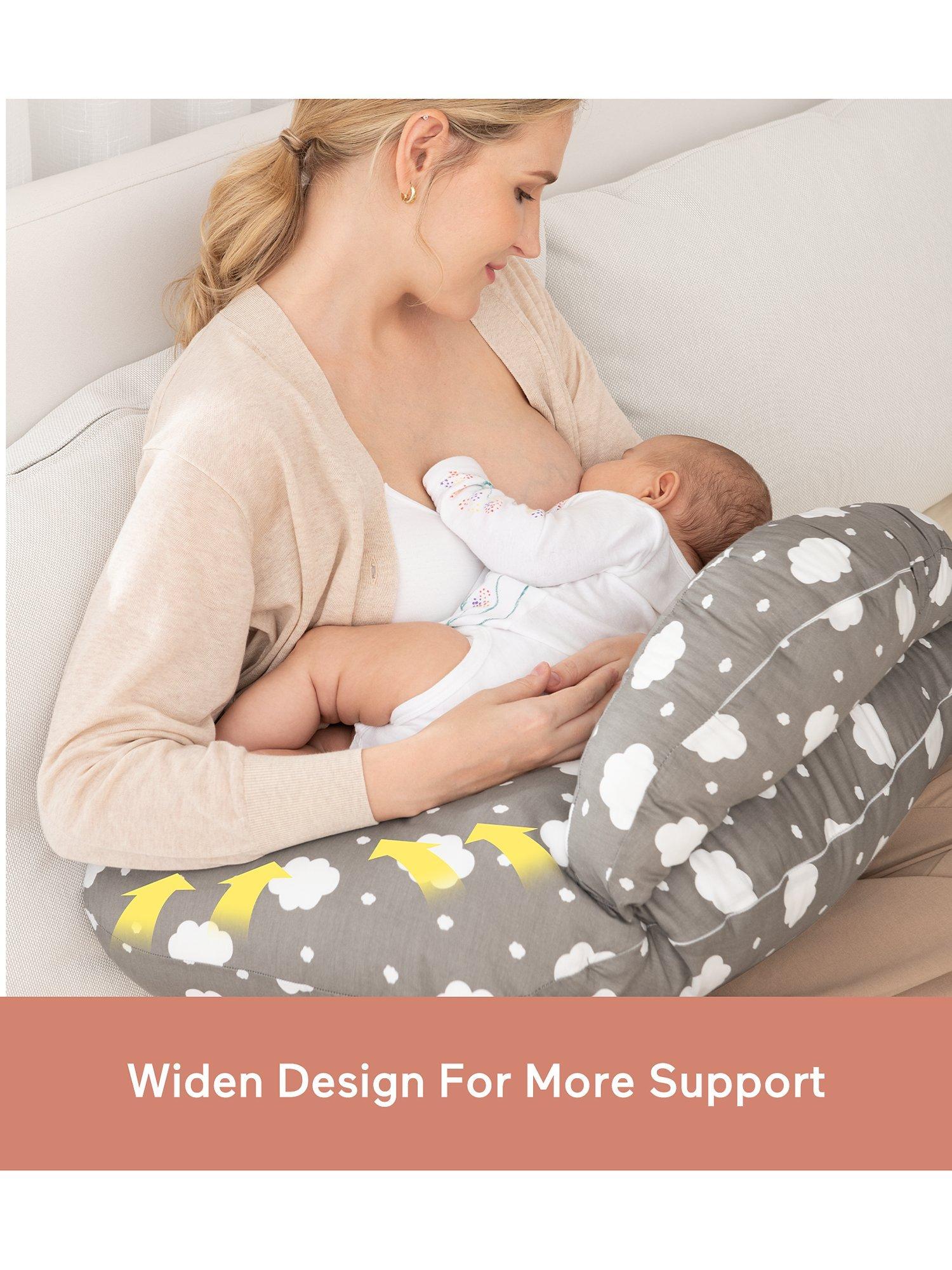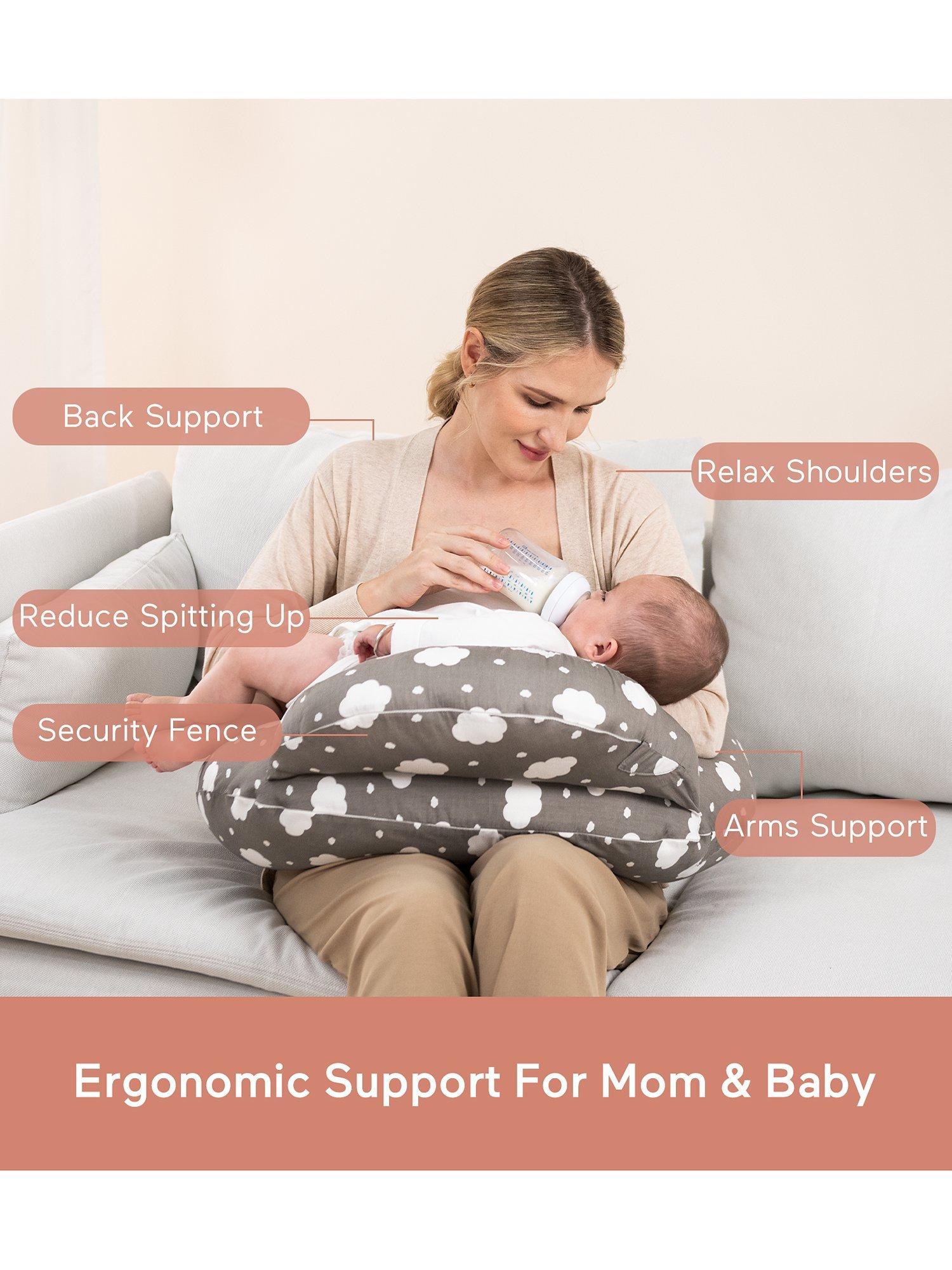 The Momcozy Adjustable Nursing Pillow is a versatile and multifunctional pillow designed to alleviate strain in your back, neck, and arms while nursing or bottle-feeding your baby. The pillow cover is made of 100% cotton, easy to care for, and machine washable. It lifts your baby to a more ergonomic position when nursing or bottle feeding, which allows you to breathe easier, promotes better circulation, and aids in muscle relaxation.