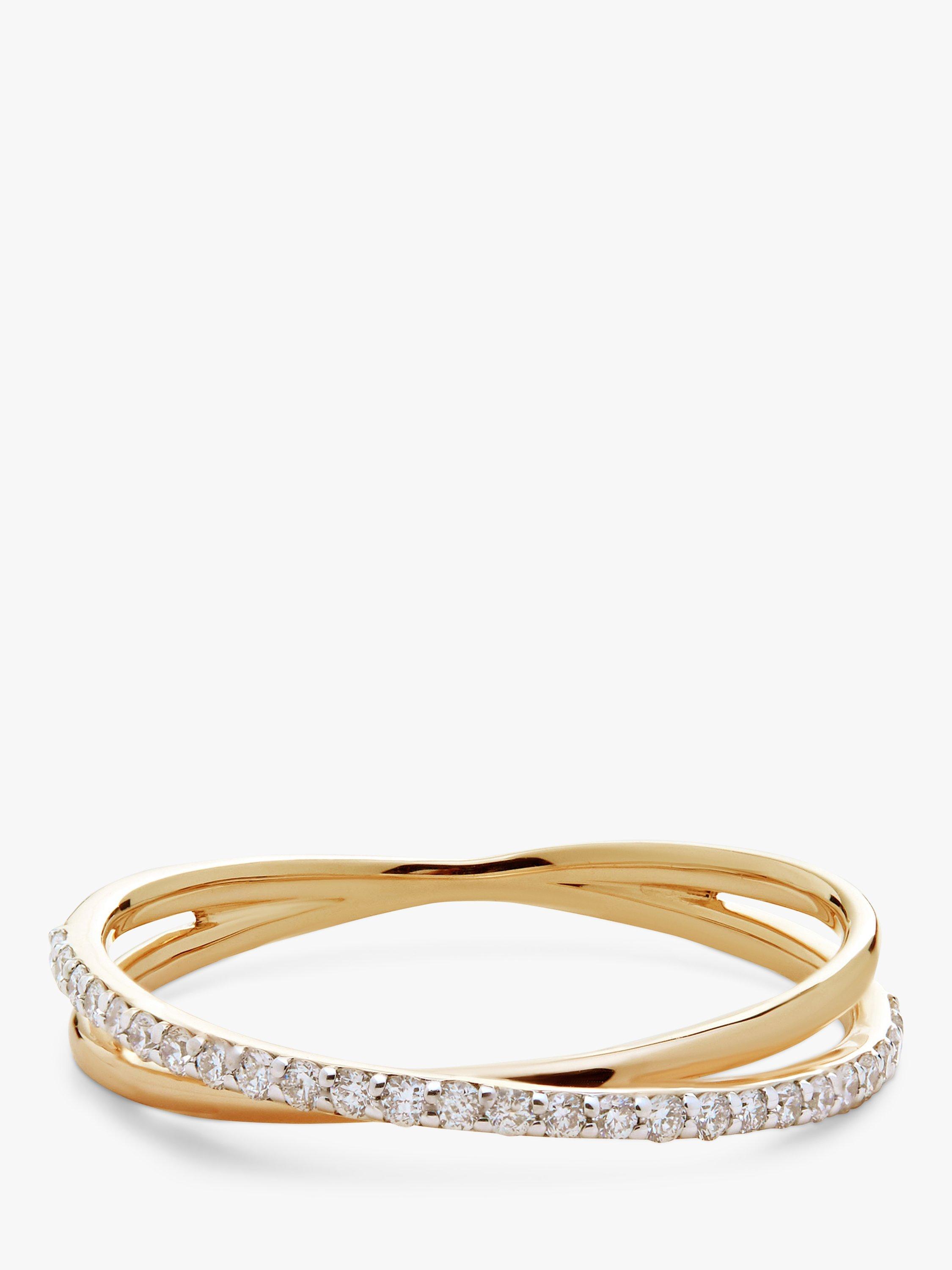 Monica Vinader14ct Yellow Gold Diamond Cross Over Ring, Gold