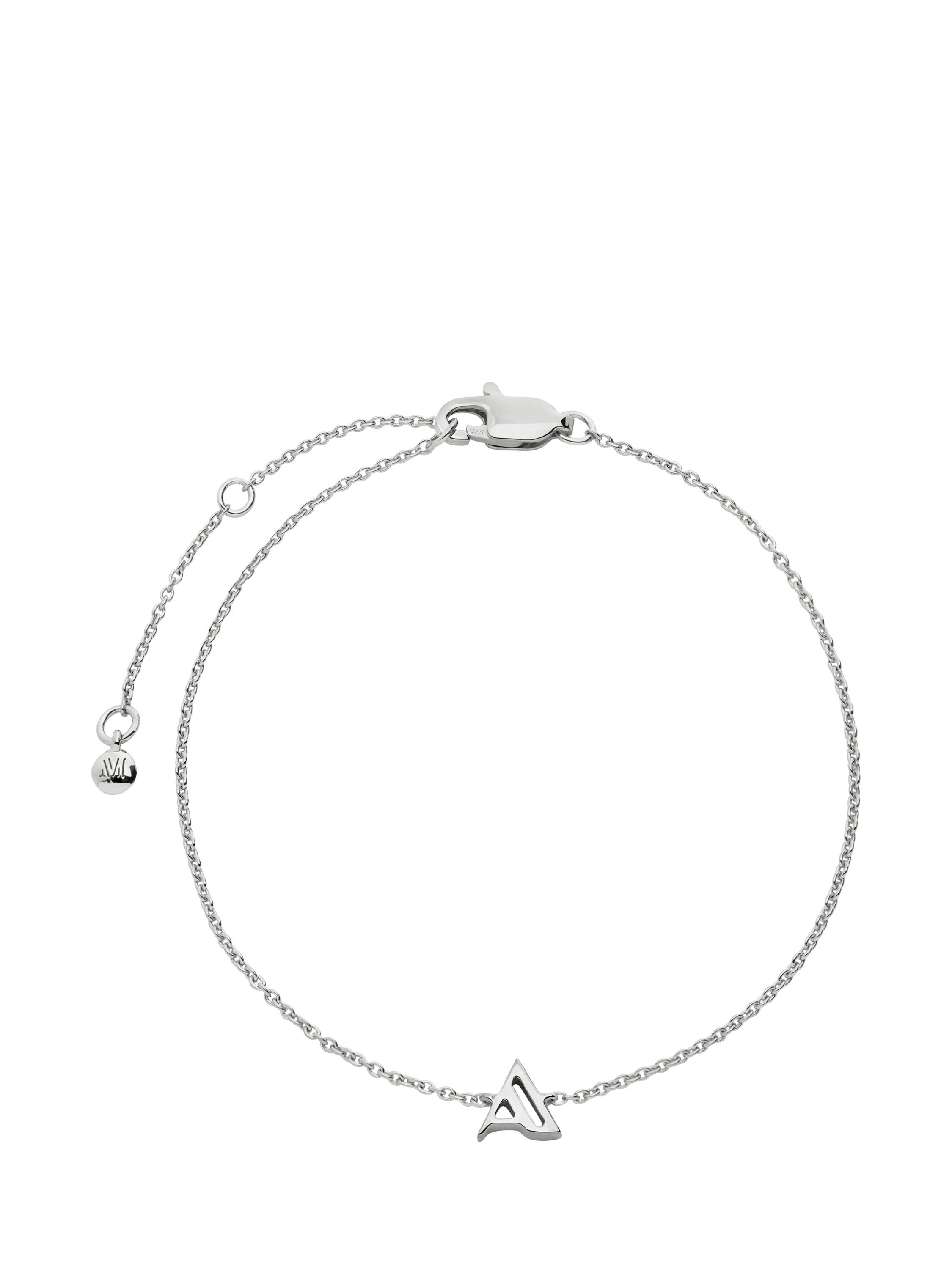 A single initial with a geometric Art Deco-inspired design suspended on a fine chain. It is crafted from 100% recycled sterling silver and is adjustable in length. A simple way to personalise your look.