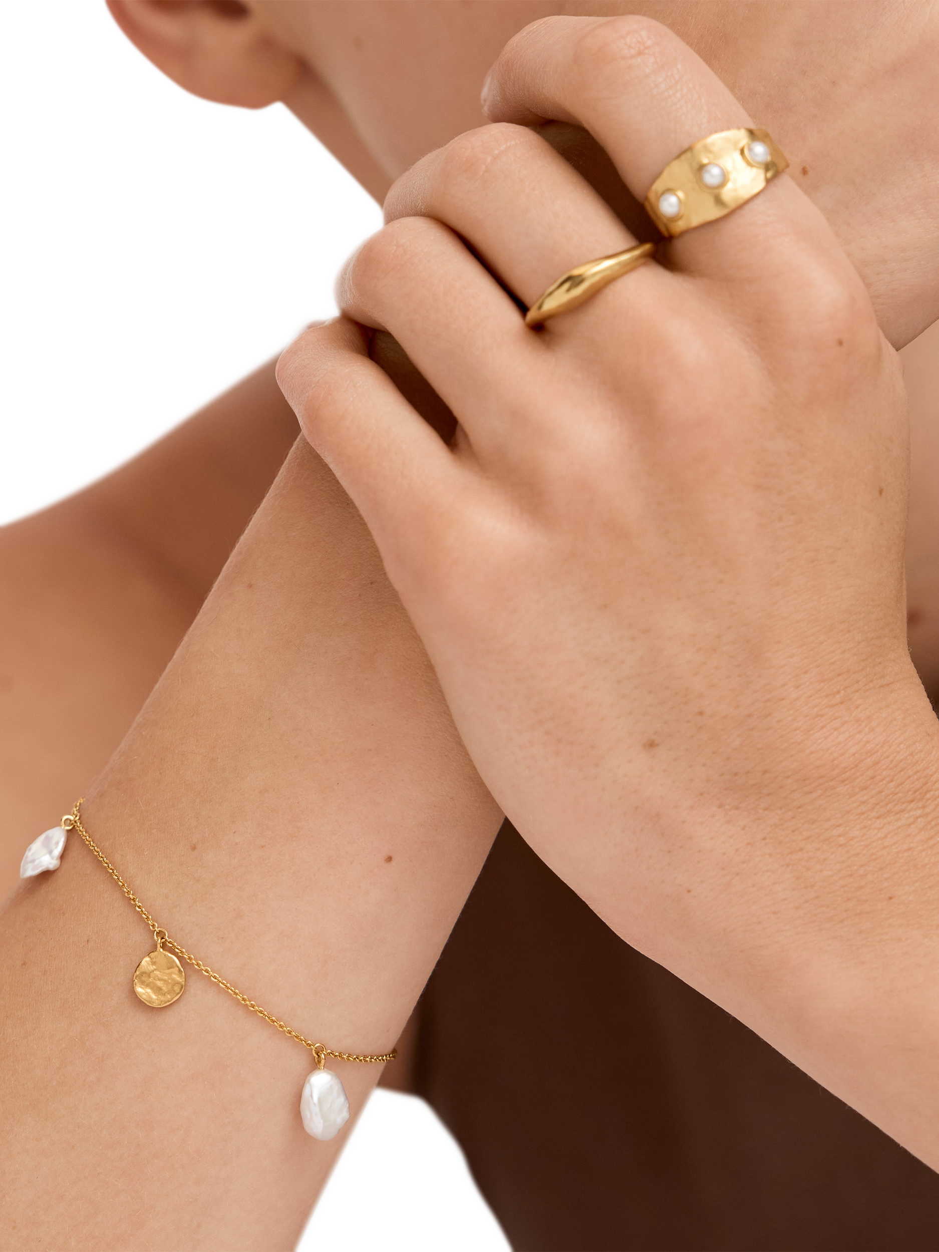Proof you don't need to be in Italy, to be in Italy. This hammered ring is crafted in 18k gold vermeil with a trio of button pearls.