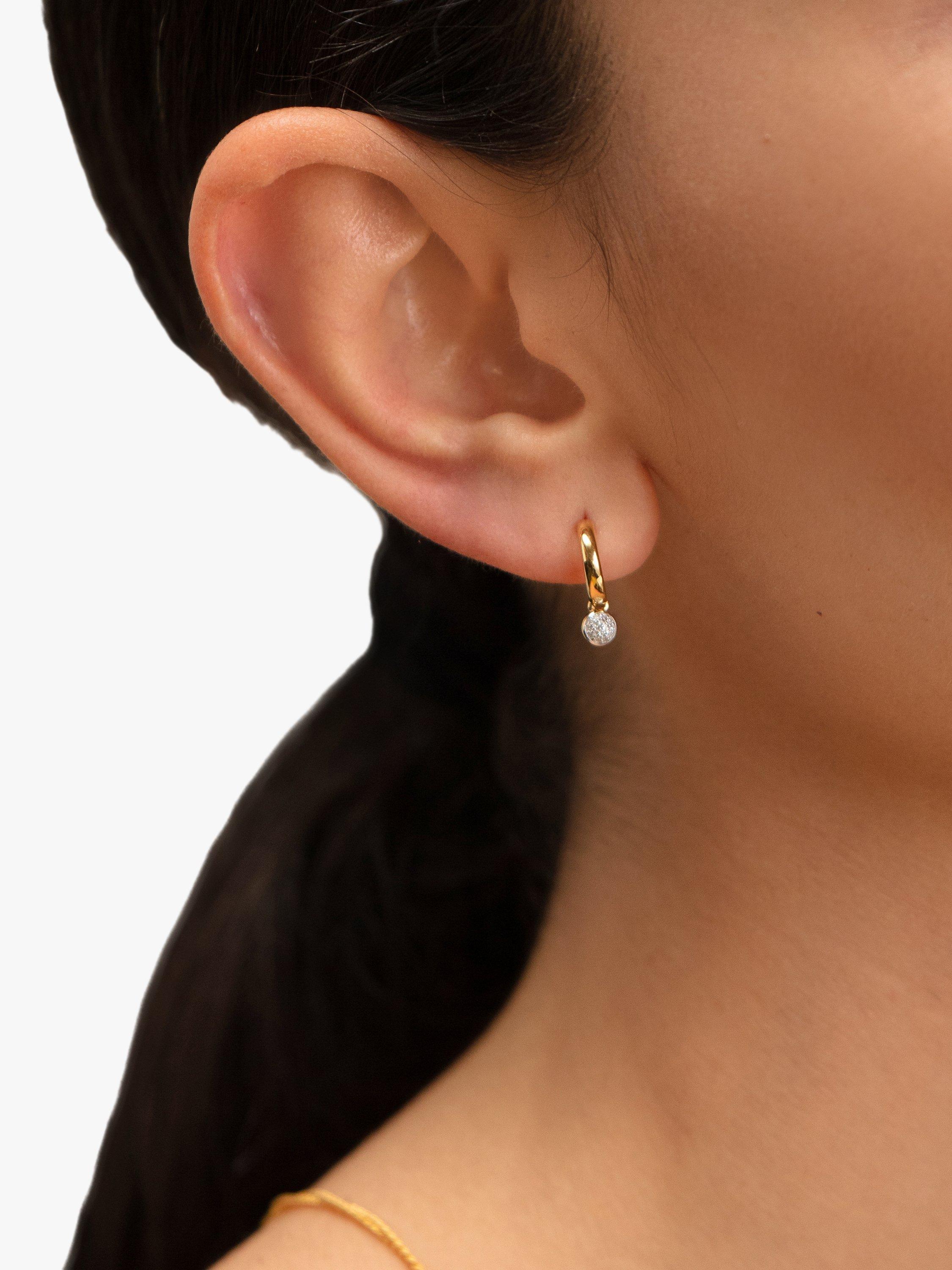 Perfect for stacking or on their own to add a shine to any outfit, this pair of huggie hoops from Monica Vinader is set with sparkling diamond.