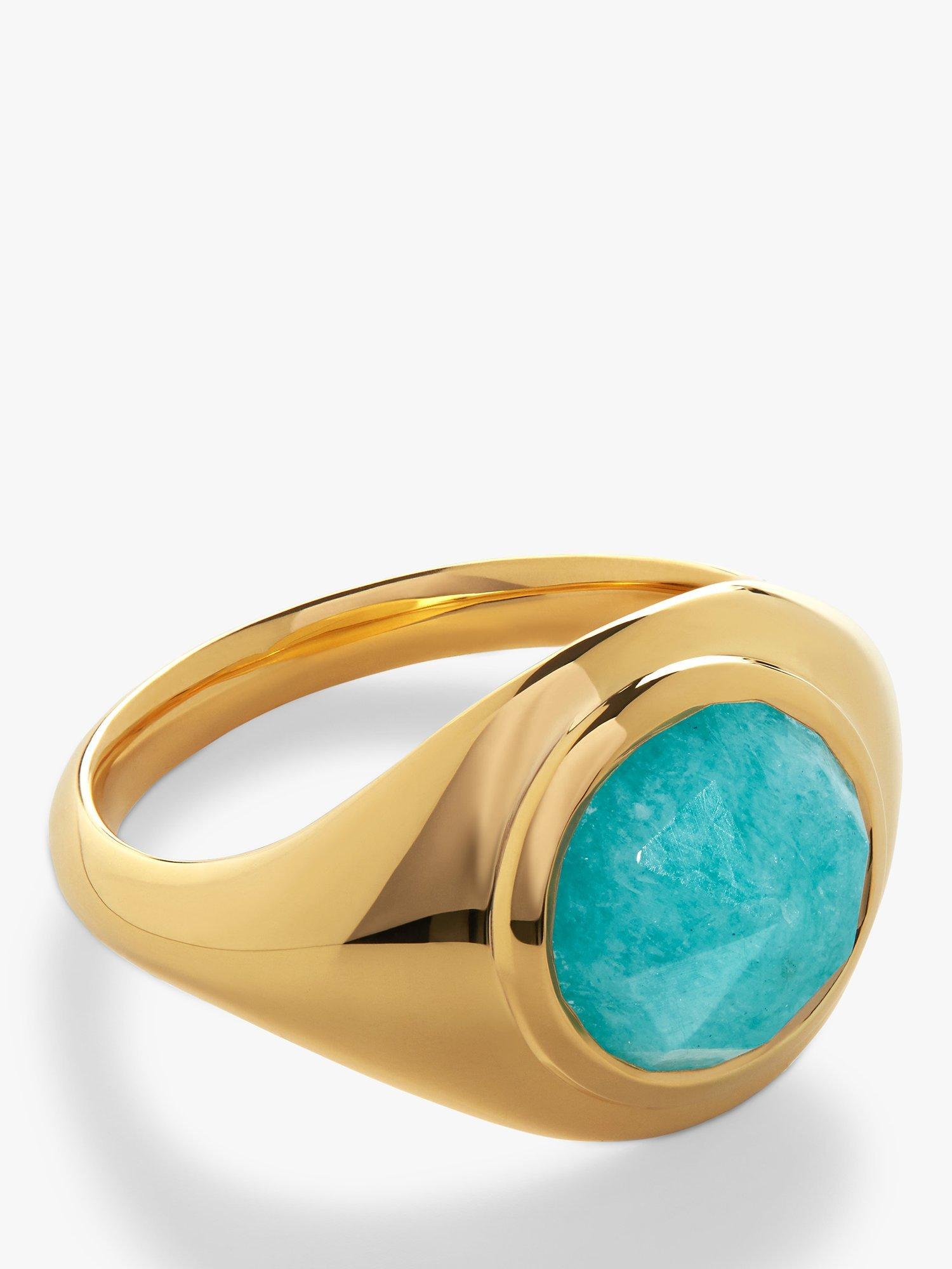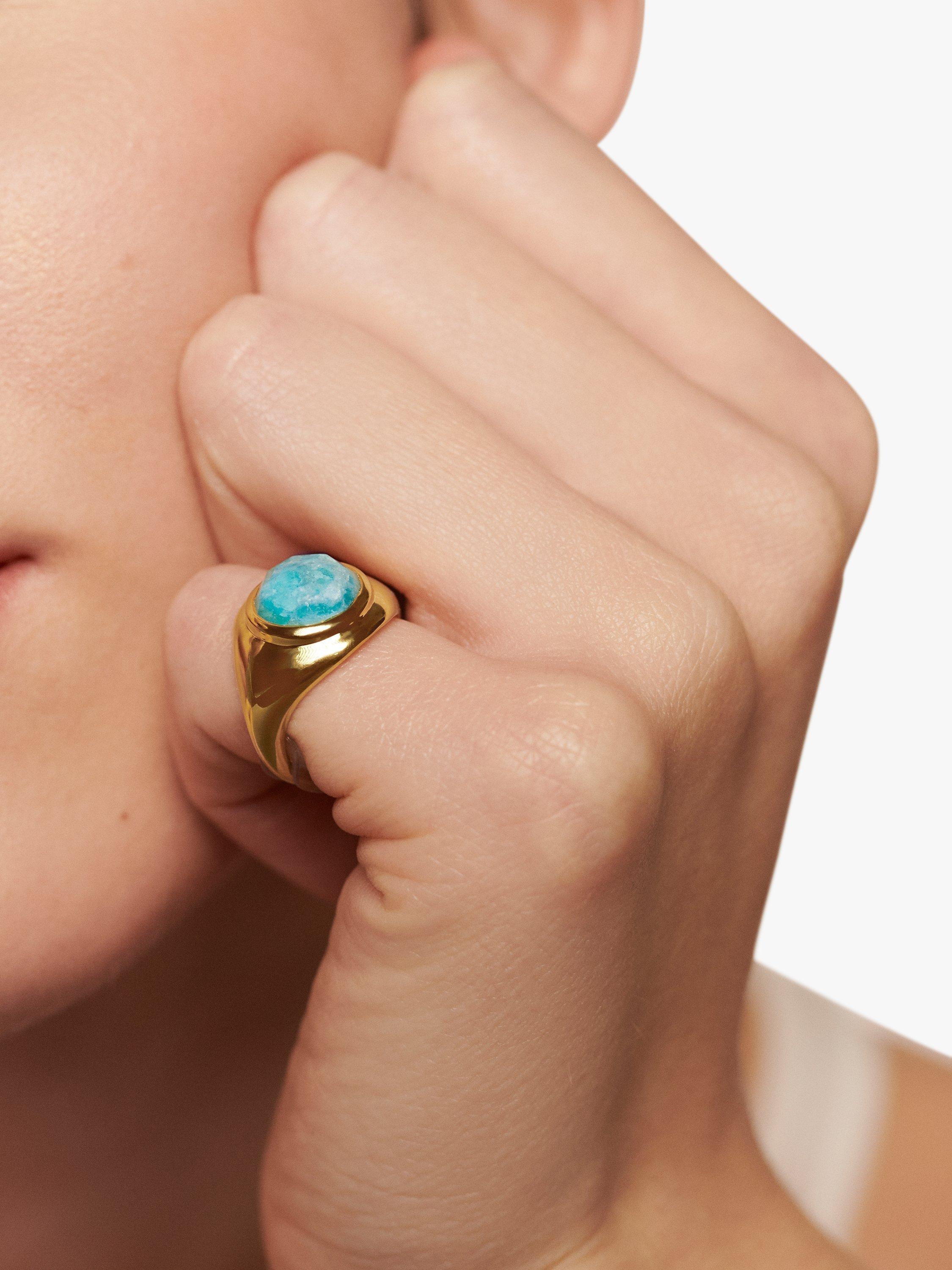 Fusing Fei's love for the moon with Monica Vinader's quintessential artistry, this Eclipse Signet Ring is crafted with hand-faceted amazonite - the spiritual stone of balance. The stone is encased in high-shine gold vermeil.