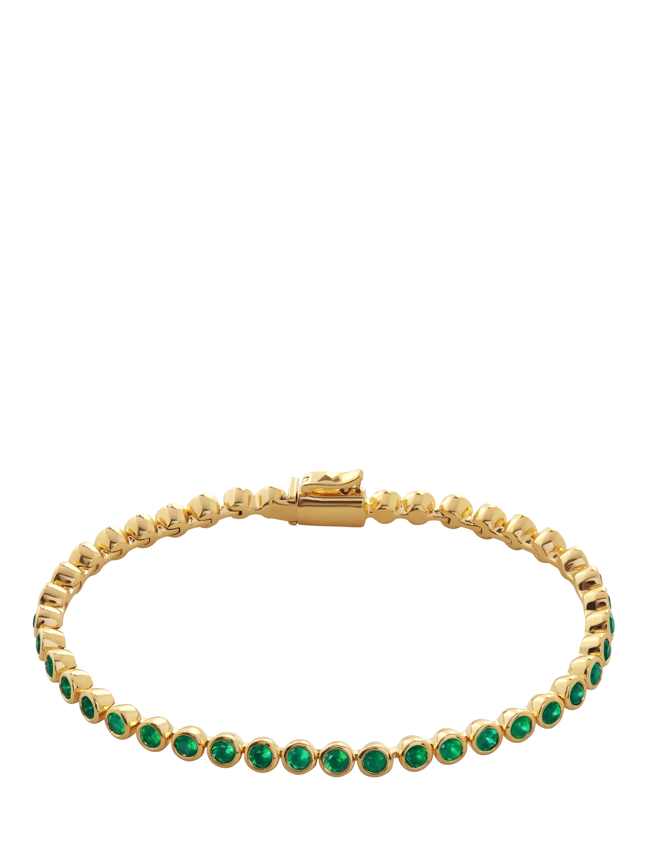 It's tennis season. Keep your eye on the prize and by prize we mean natural green onyx that pops with colour. Crafted with a safety arm and button for maximum security.
