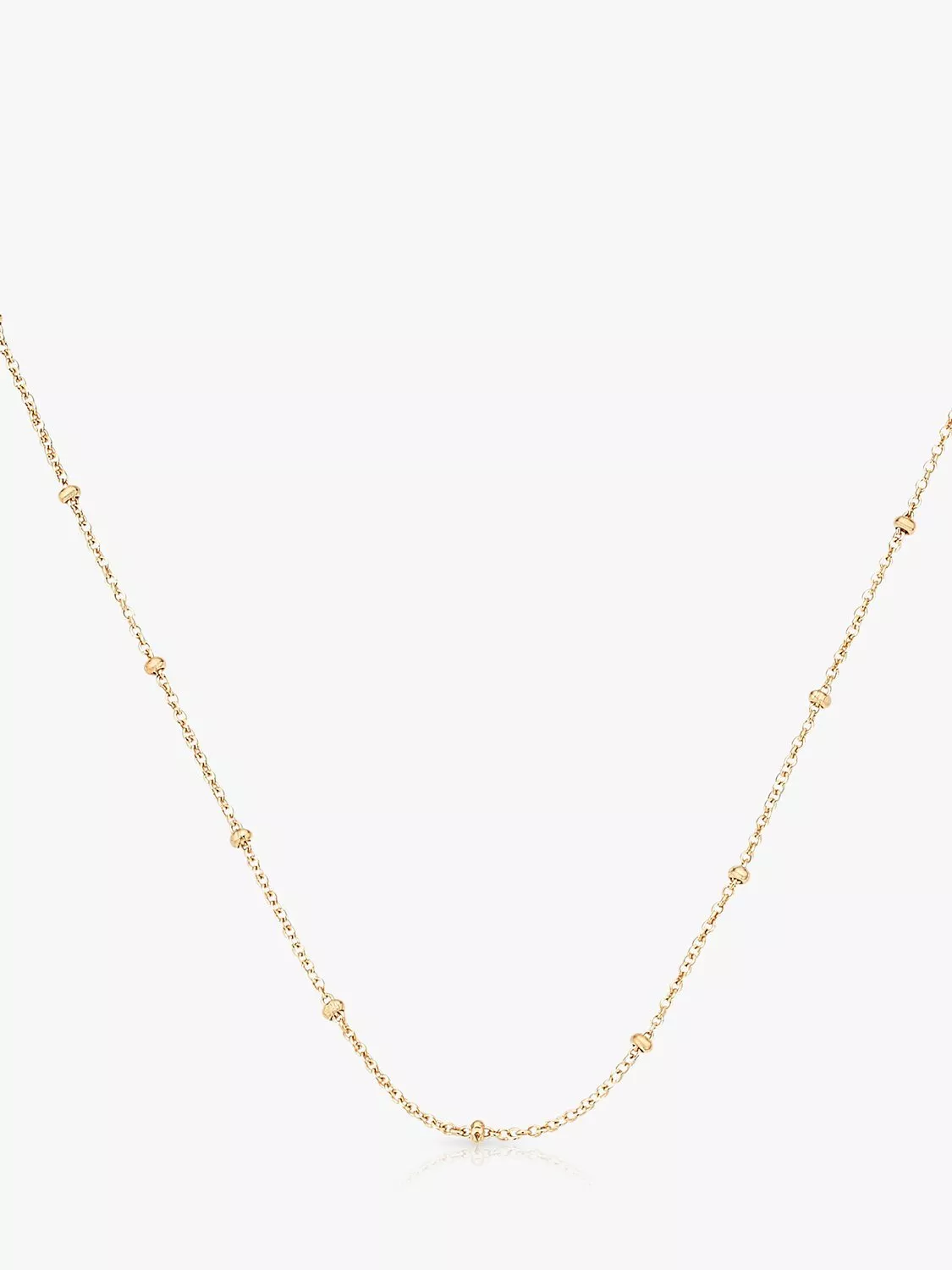 This delicate Monica Vinader fine beaded chain is made from sterling silver and covered in a choice of gold platings. The design lends itself to versatility as it is perfect for holding your favourite pendant charms, or wearing alone for a chic look. The chain features three jump rings, allowing you to adjust the length. Every hand-crafted Monica Vinader piece comes with a 5-year warranty and lifetime repairs.