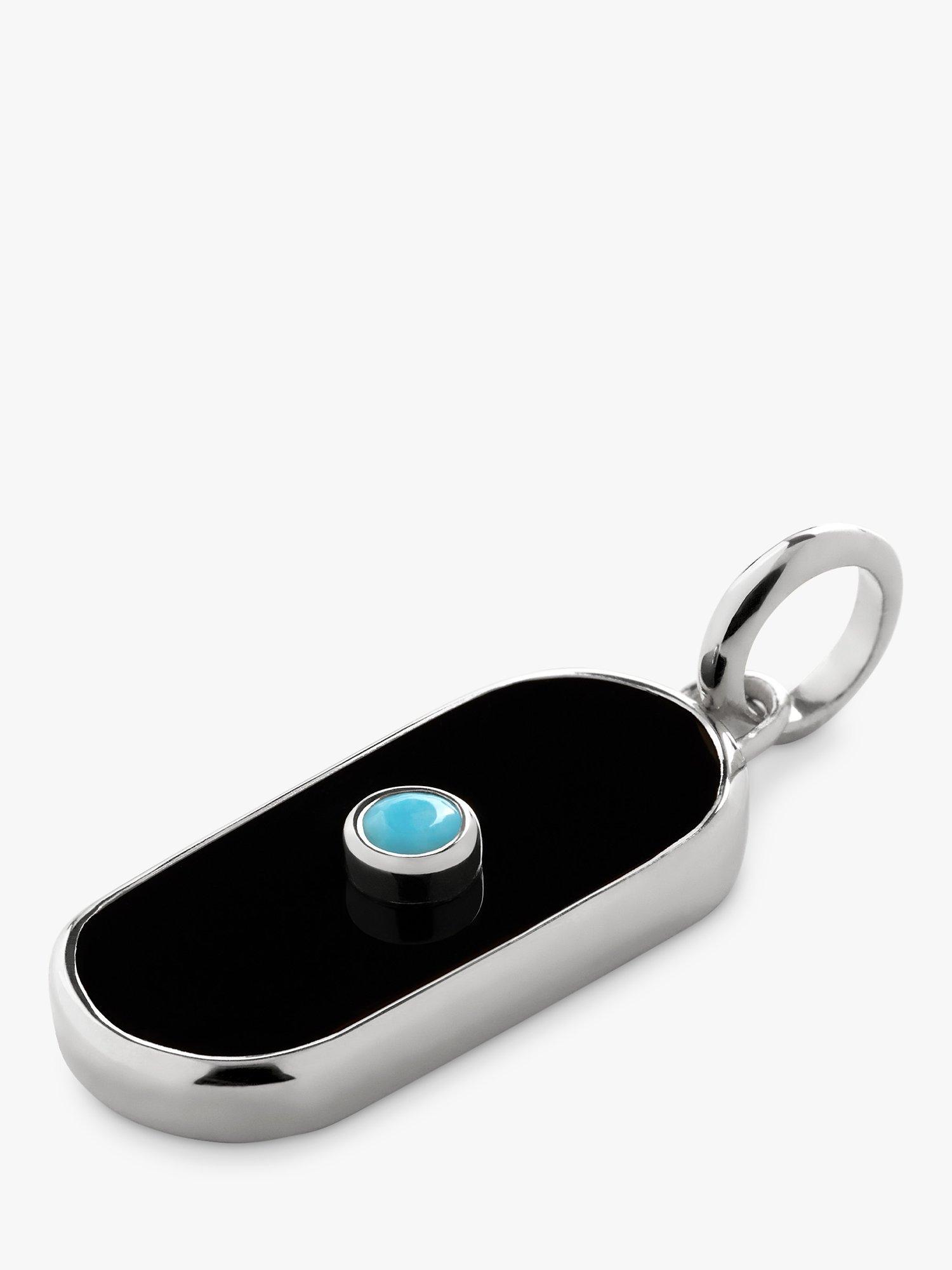 Designed with an elevated turquoise stone and onyx detailing, this Gemstone Tablet Charm, is perfect to add onto a necklace or a bracelet.