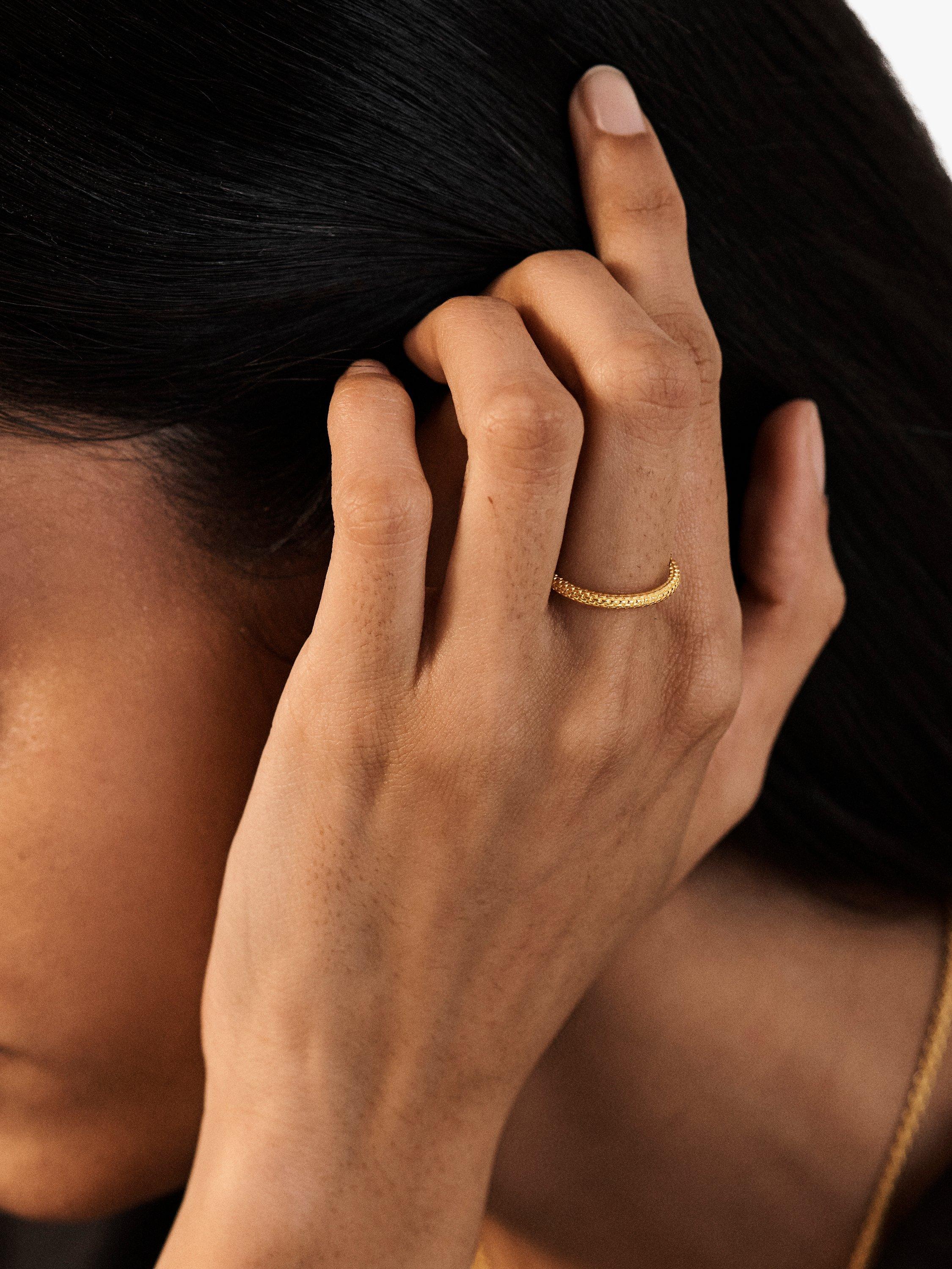 One ring, endless stacking combinations. With a woven chain texture, this ring adds a vintage edge to any look. This is the perfect everyday stacking ring. Every hand-crafted Monica Vinader piece comes with a 5-year warranty and lifetime repairs.