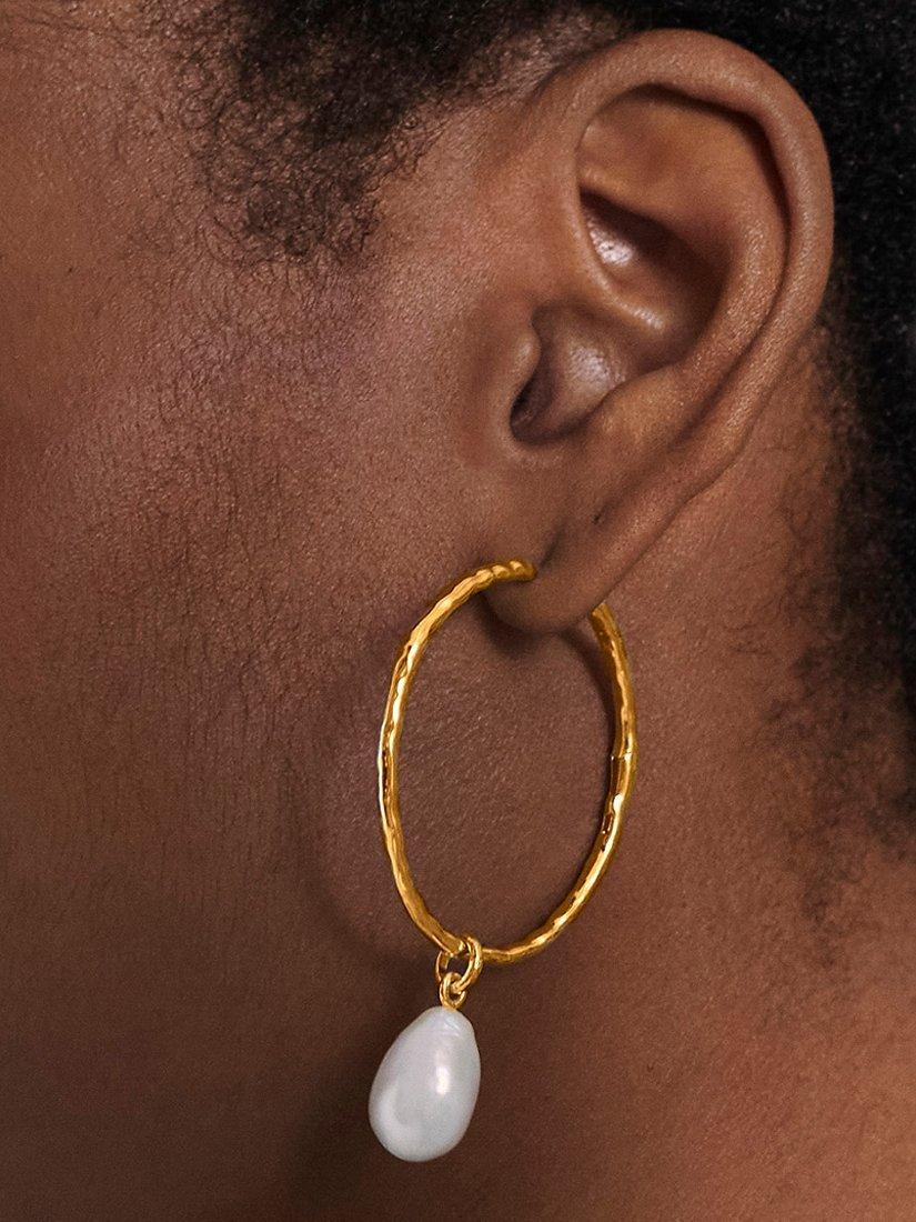 Sculpted to a hoop shape, this pair of earrings from Monica Vinader is designed with lustrous pearl.