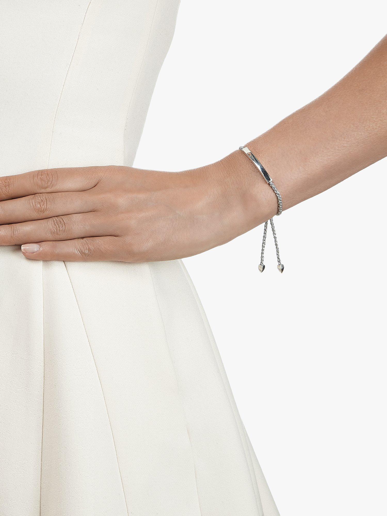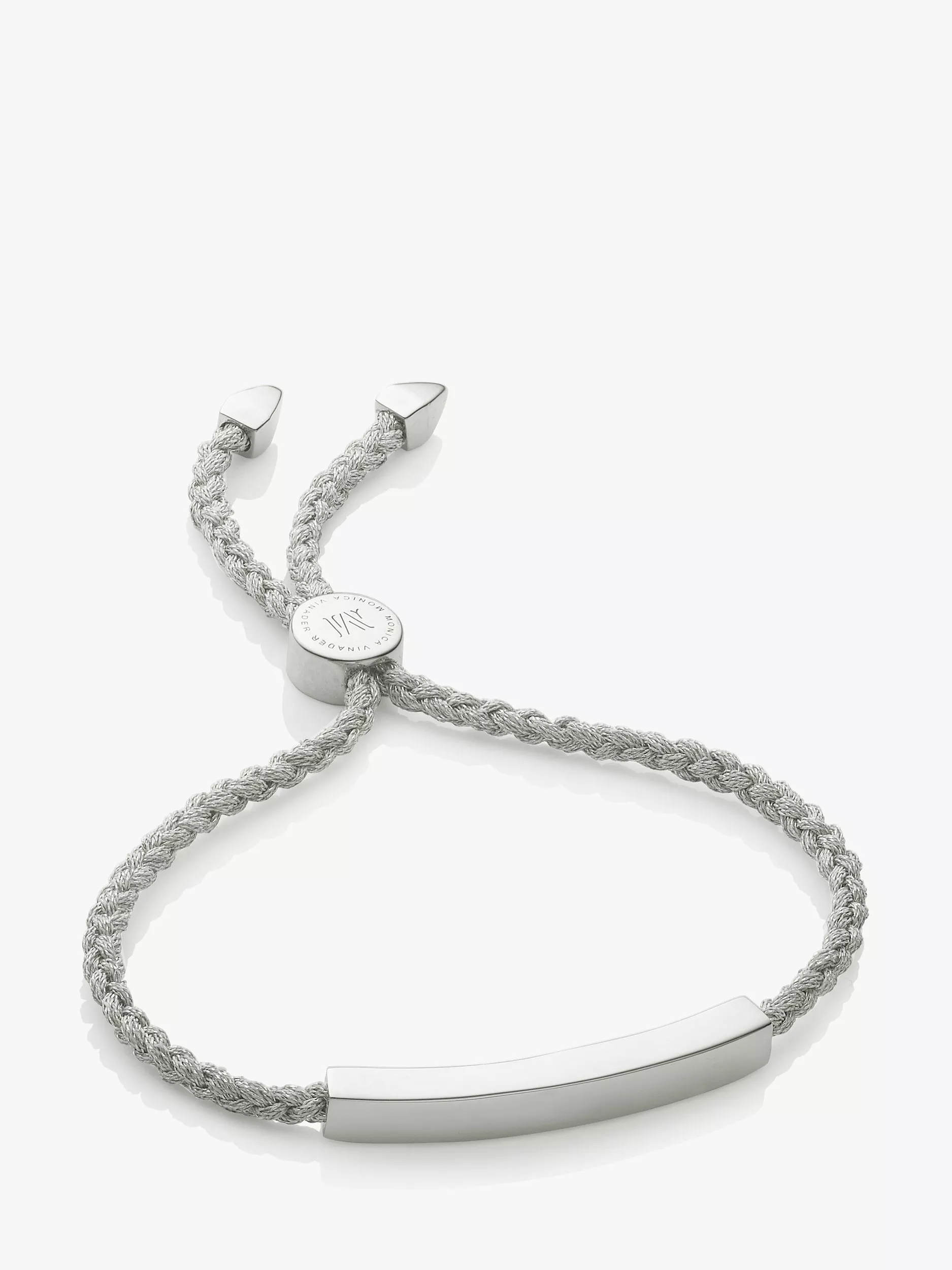 This sleek friendship bracelet from Monica Vinader features a simple curved bar with a clean, streamlined silhouette. The toggle fastening slides easily to adjust the cord's length for a snug fit. Due to the metallic nature of this cord, the fibre is slightly firmer to give us that subtle sparkle. This firmness may feel slightly rough to start with but will soften over time. Every hand-crafted Monica Vinader piece comes with a 5-year warranty and lifetime repairs.