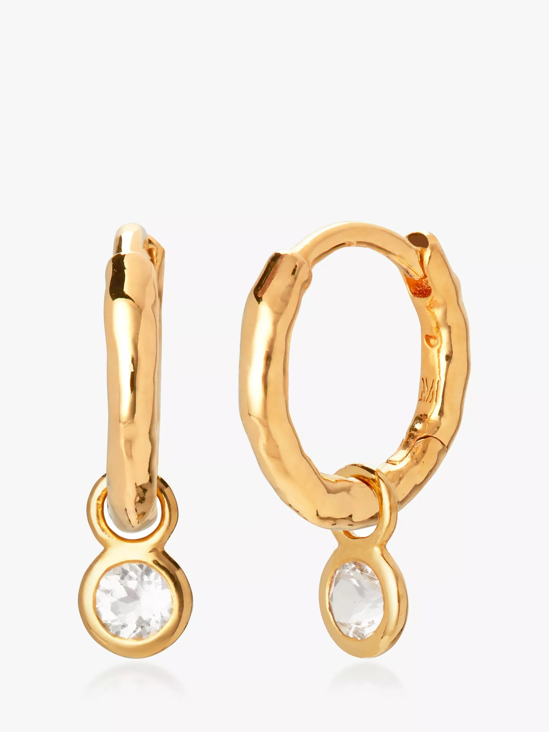 Add subtle colour to your look with these cute drop earrings from Monica Vinader. The simple design features a coloured gem hanging at the end of a hoop earring. The huggie style fits close to the lobe and is perfect as part of a layered style.
