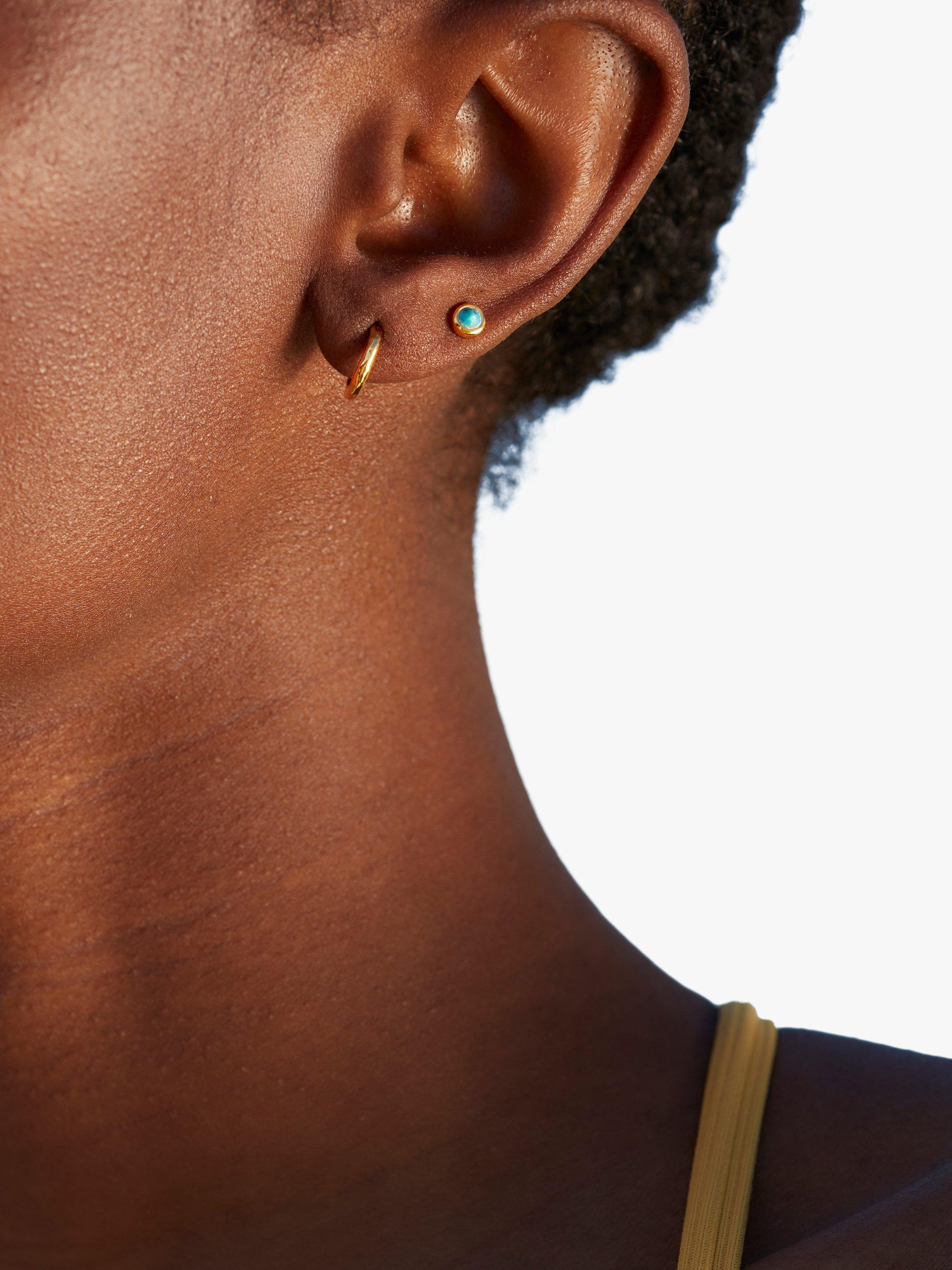 Add subtle colour to your look with these cute and tiny stud earrings from Monica Vinader. The simple design features a coloured gem in the middle and is secured with a butterfly clasp.