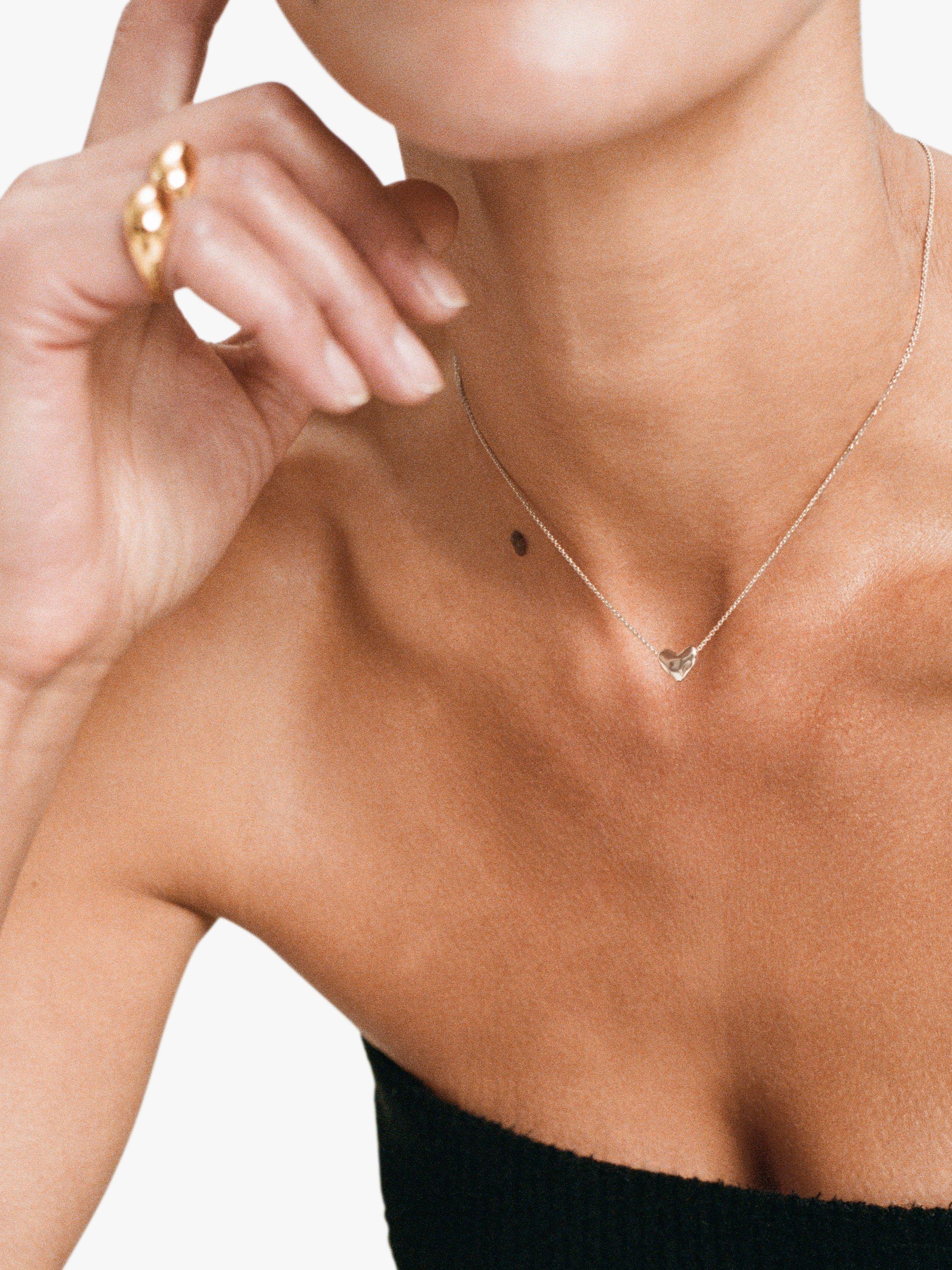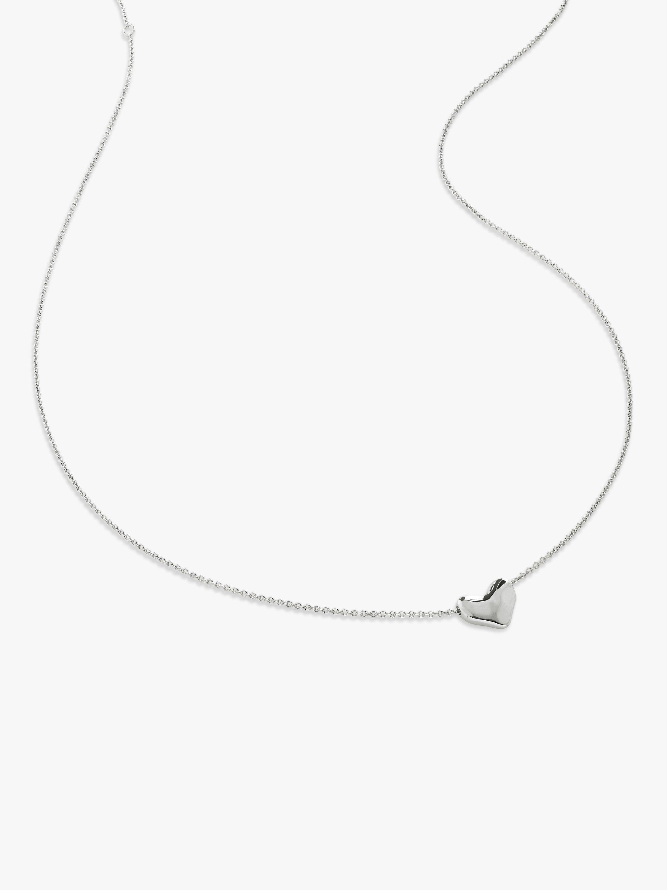 Cast from a heart-shaped pebble set on an adjustable chain, this delicate necklace captures the spirit of your love.